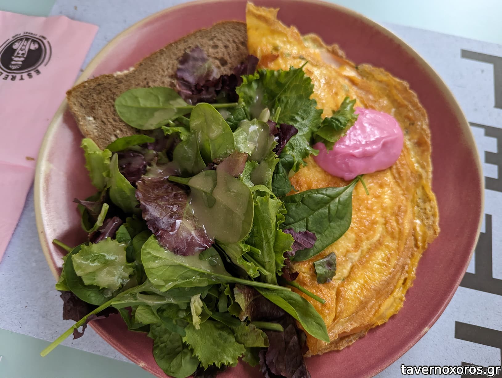 "Ομελέτα με γαλοπούλα, cheddar, φρέσκο κρεμμύδι και σπιτική μαγιονέζα" (αδιάφορη)
