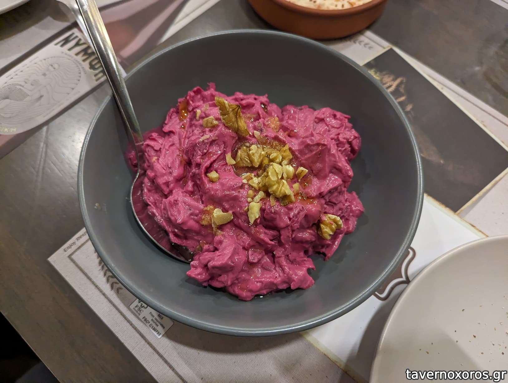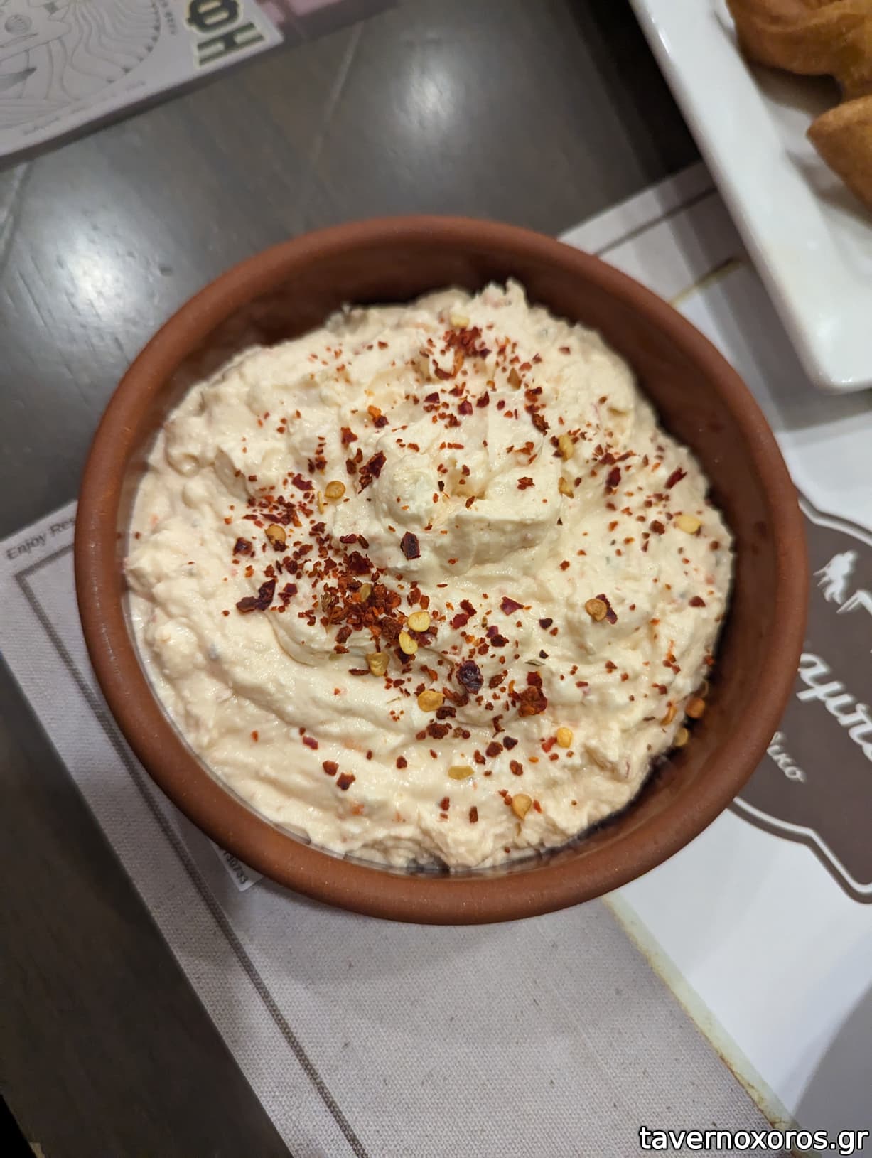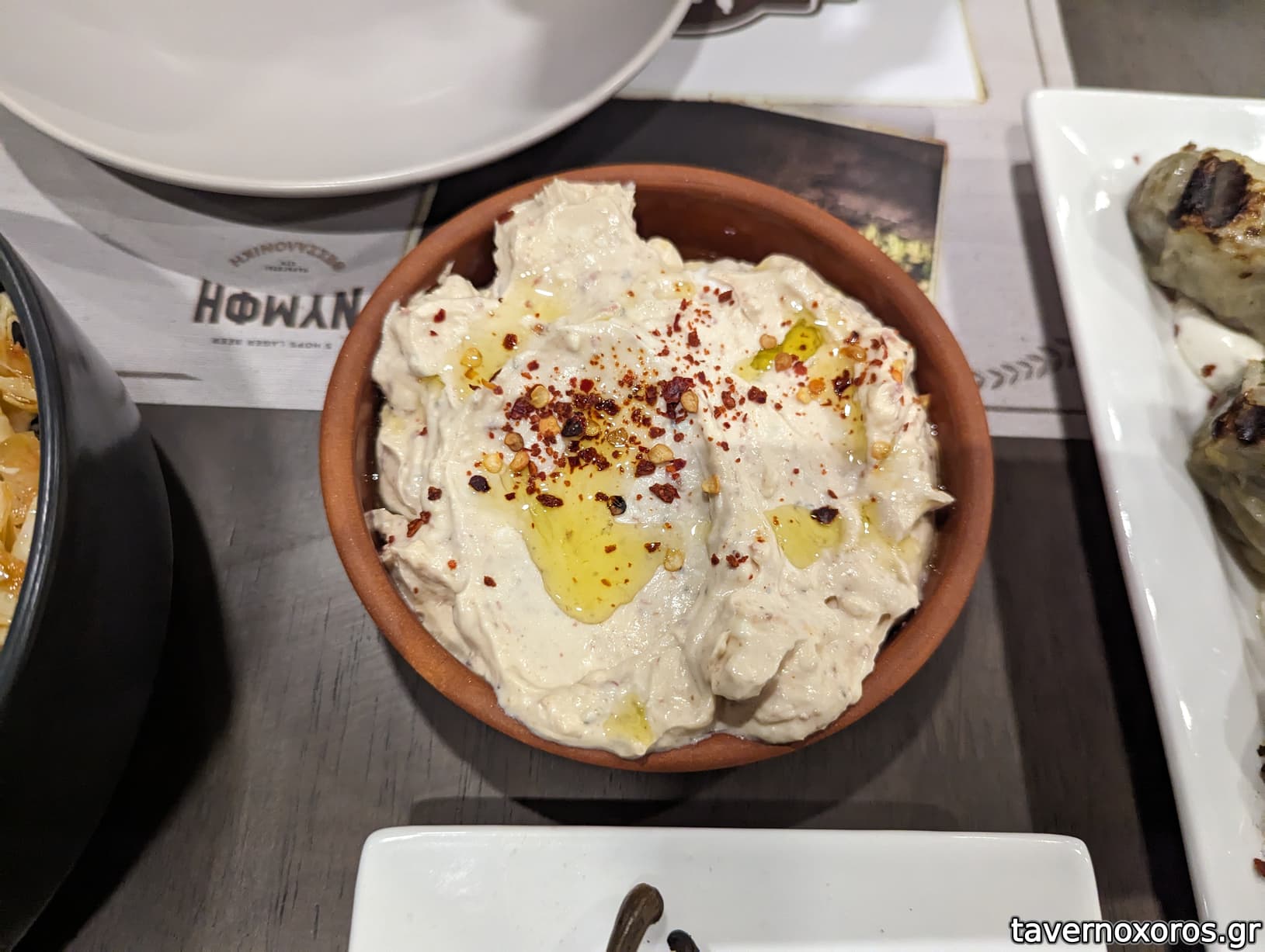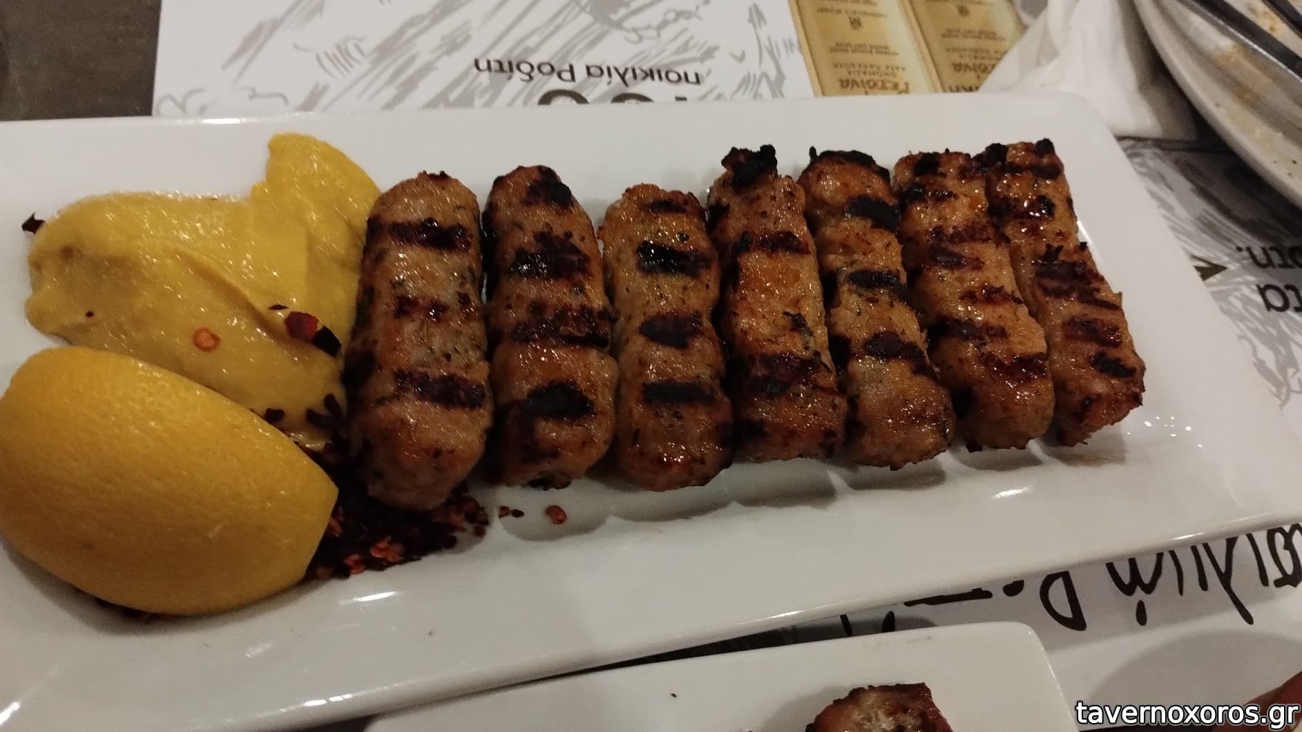 Φασόλια γίγαντες με λουκάνικο (ωραίος και χορταστικός μεζές), μισό τζατζίκι, μισή χτυπητή (χειροποίητα, συμπαθητικά)