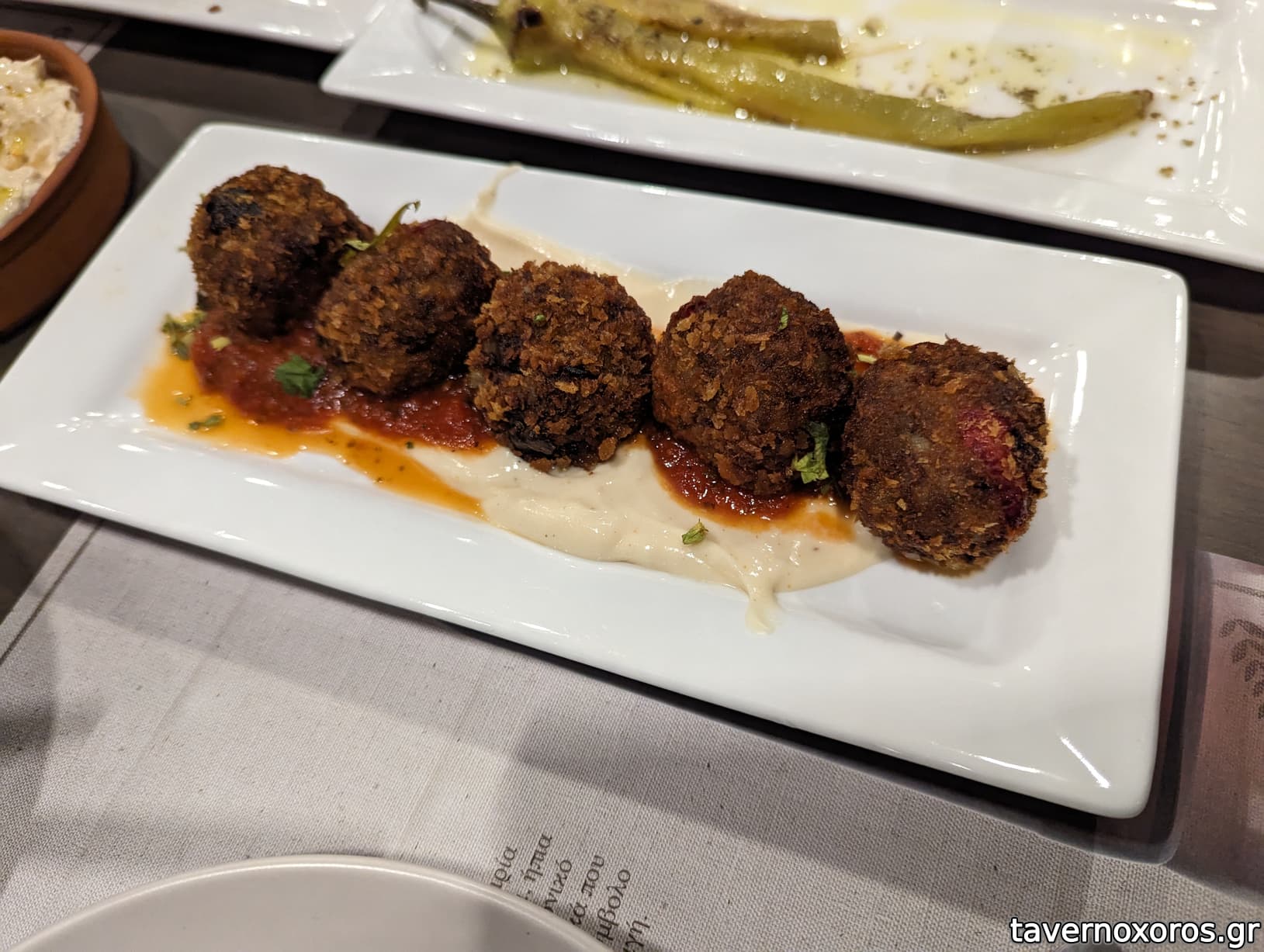 "Κροκέτες μουσακά με μπεσαμέλ και κόκκινη σάλτσα" (ενδιαφέρον, καλό)