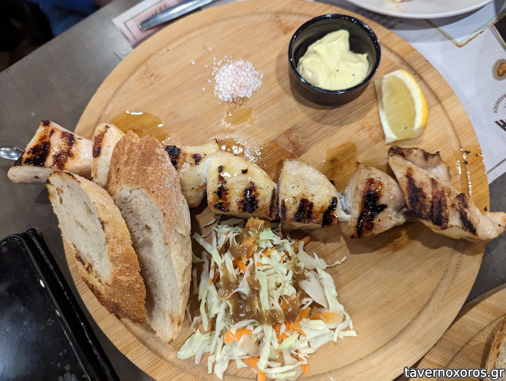 Κοντοσούβλι κατόπουλο (το φάουλ της βραδιάς, άψητο, σκληρό και άνοστο, πήγε άπατο)