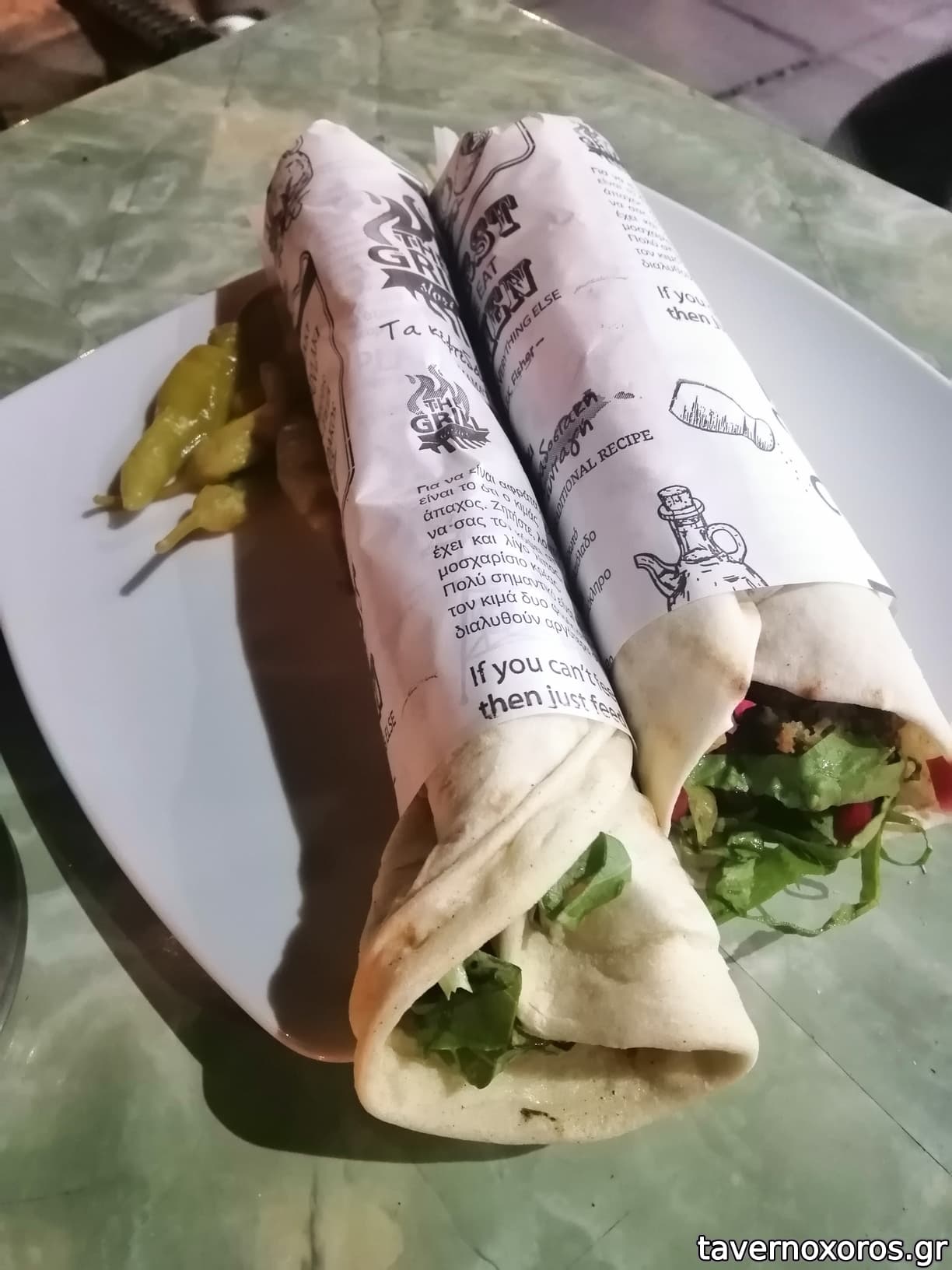 Το αστείο ήταν ότι επειδή ήταν πακέτο, στην σακούλα μου έβαλαν χύμα και μερικές πιπερίτσες τουρσί. Τις πέταξαν έτσι μέσα, φαίνεται ότι συνηθίζεται.