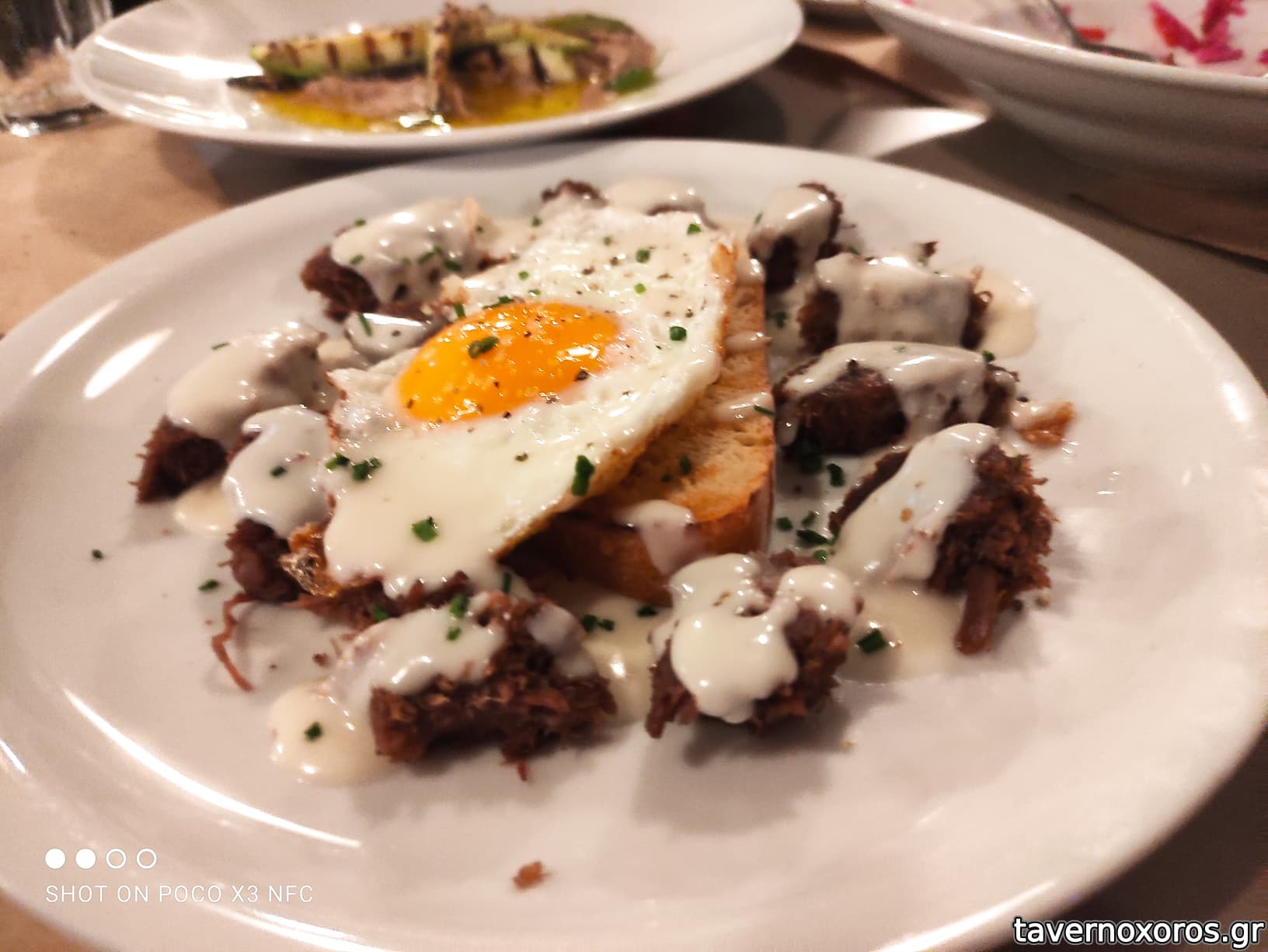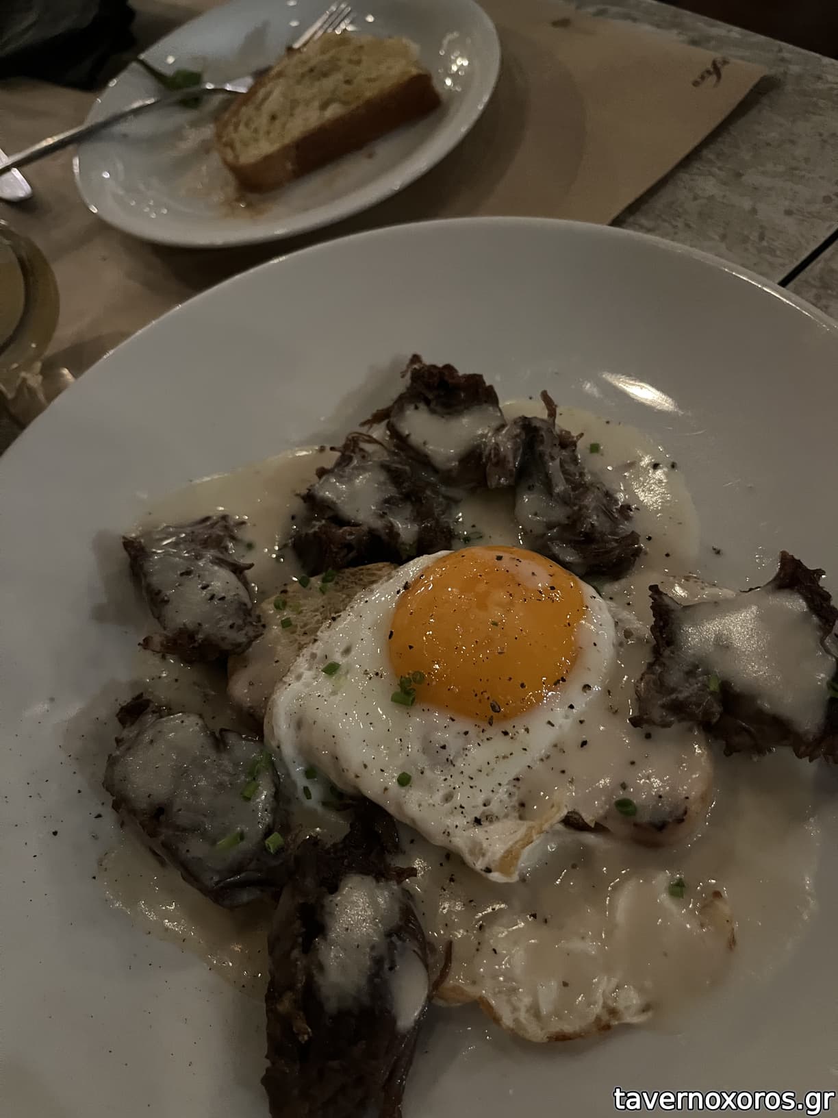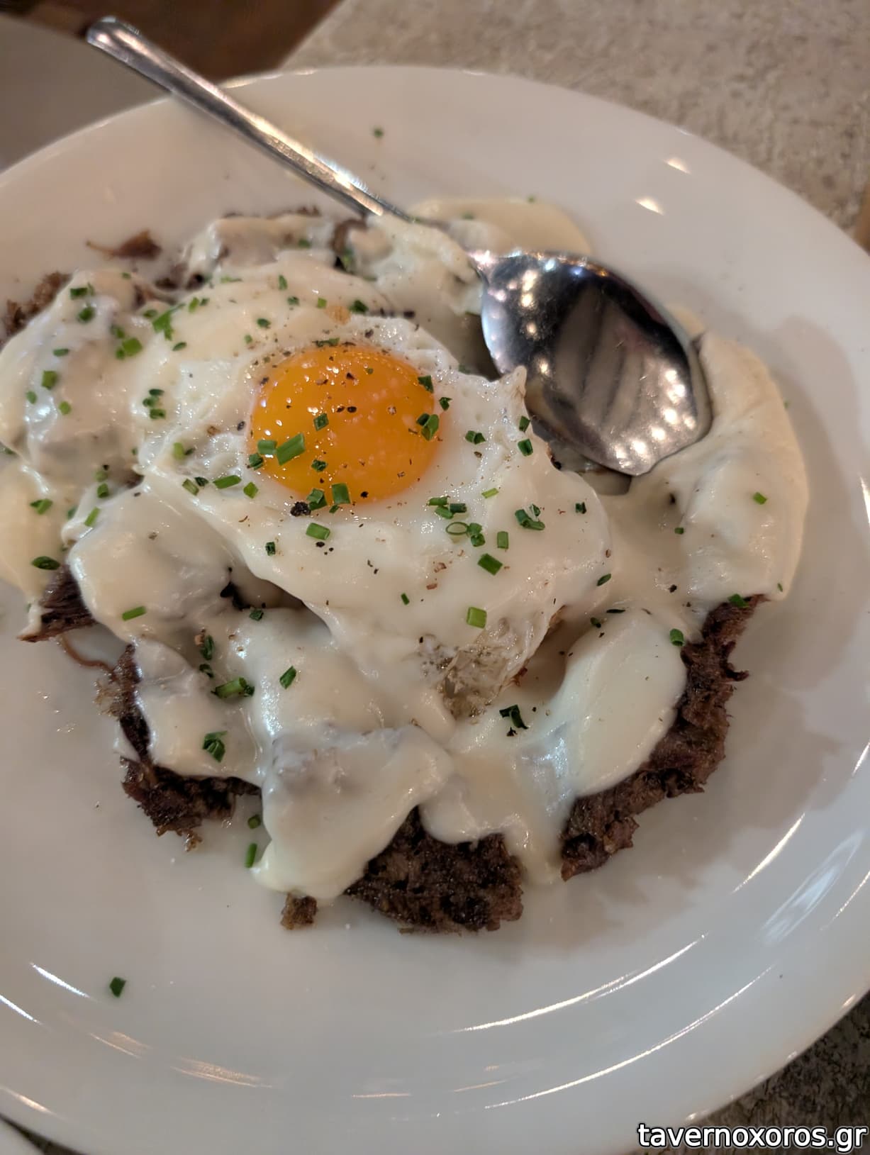 -Καβουρμας με αυγο και κρεμα γραβιερας. Νοστιμο πιατο.
