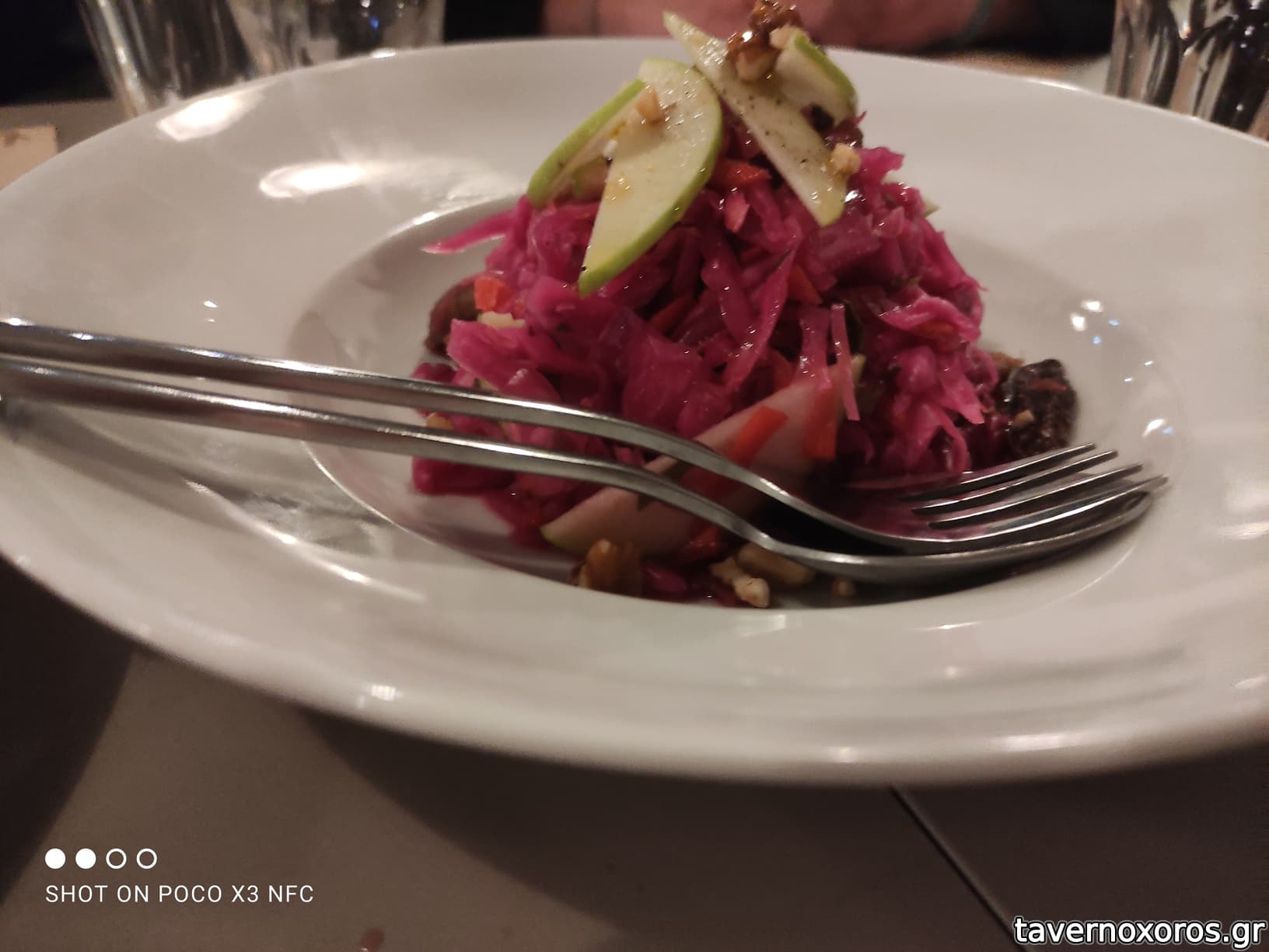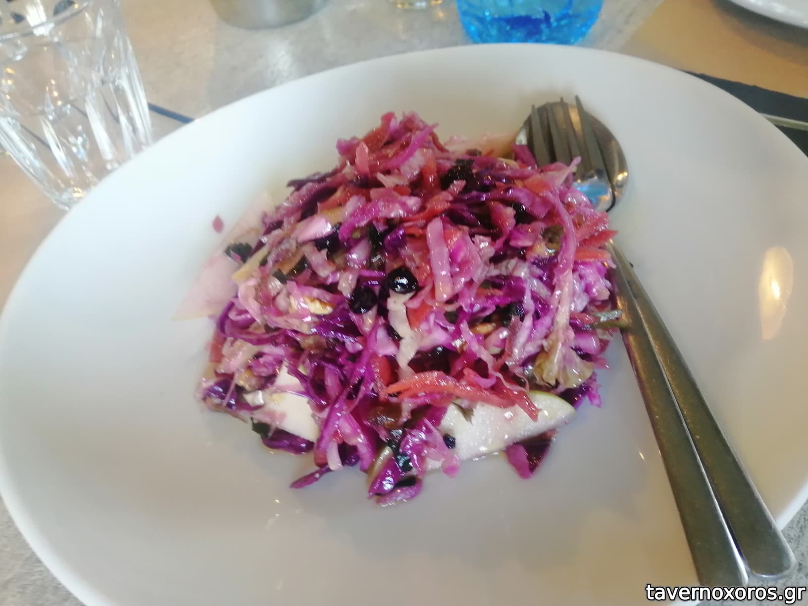 Πικάντικη σαλάτα με σταφίδες, καρύδι και ξινόμηλο (8,5€)