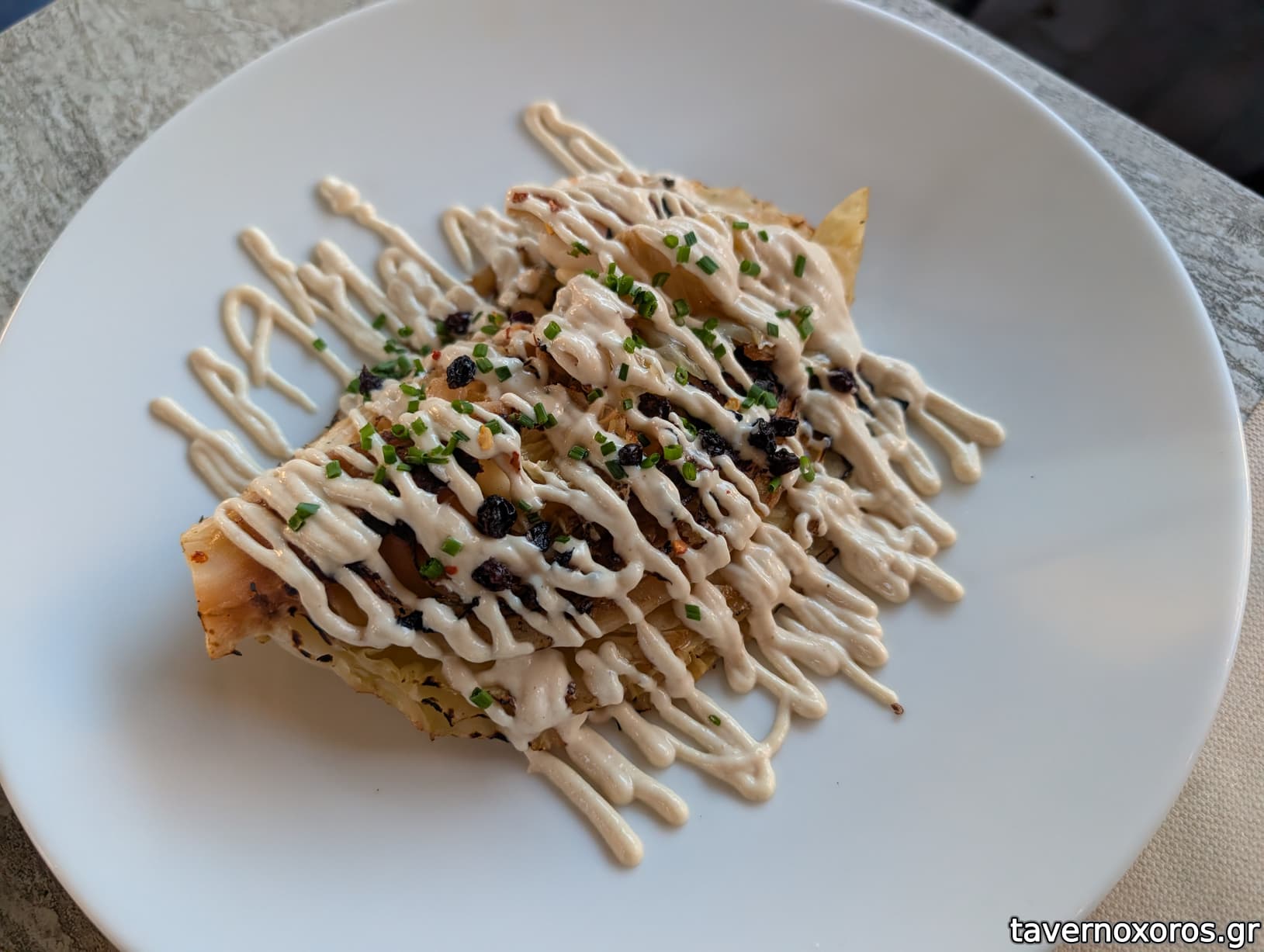 "Λαχανίδα ψητή με ταχινολέμονο και σταφίδα" (μια χαρά)