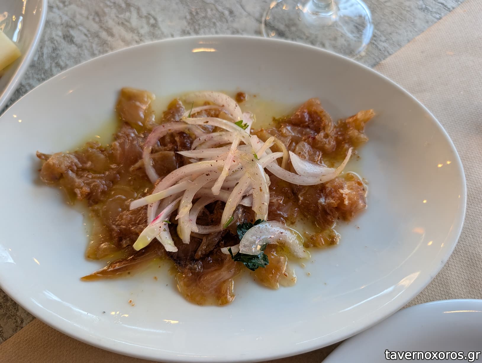 -Φαβα με ψητο κρεμμυδι. Καλη υφη η φαβα, υποτονικη η γευση χωρις εξαρσεις. Το κρεμμυδι δεν προσφερε κατι το ιδιαιτερο.