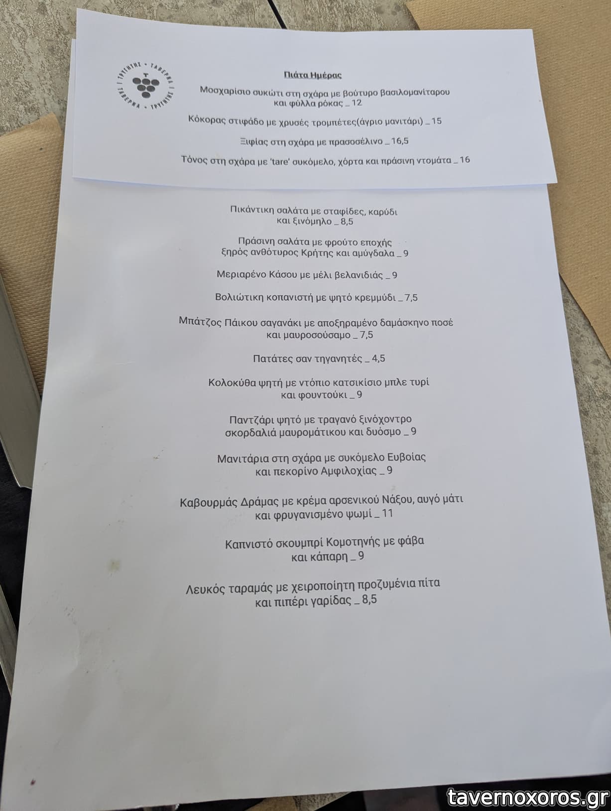 Τιμές 50 ευρώ το άτομο με πολύ φαΐ και ποτό.