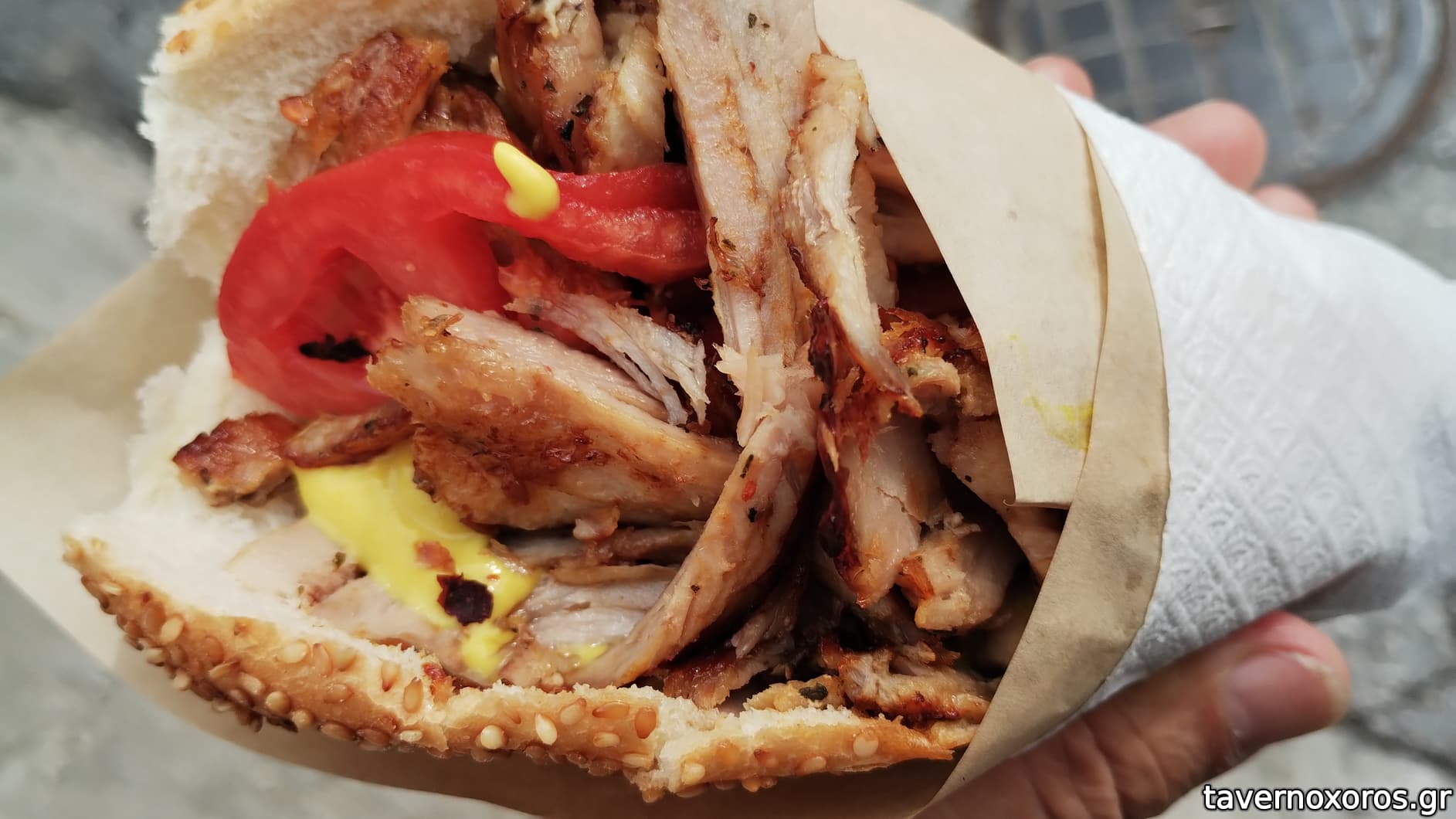 Γύρος χοιρινός με ψωμάκι (καλός. Αρκετά ινώδη κομμάτια, ψαχνά. 3,