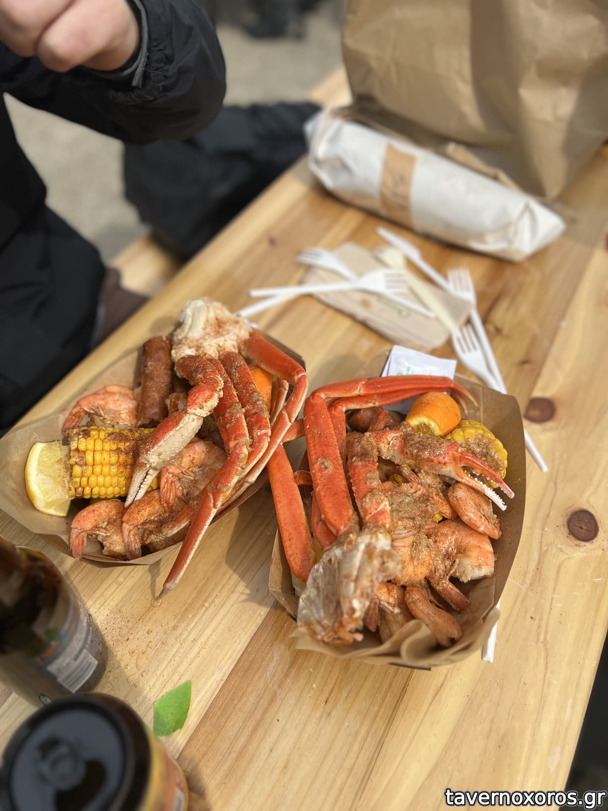 Τα σάντουιτς ήταν στο σύνολο μετρια - και κυρίως λόγω του ψωμιού , αφού είχε παπαριασει πολύ γρήγορα & δεν μπορούσε να κρατήσει τα υλικά. Από την άλλη το seafood boil ήταν καλό - κάτι το διαφορετικό για μένα χωρίς να πω ότι ανυπομονώ να το ξανά πάρω. Παραβρασμένες γαρίδες και κάβουρας με καλαμπόκι και πατάτες & λουκάνικο και old bay seasoning. Δεν έχω φάει ποτέ μου βέβαια κάτι αντίστοιχο - επομένως δεν είχα να συγκρίνω.