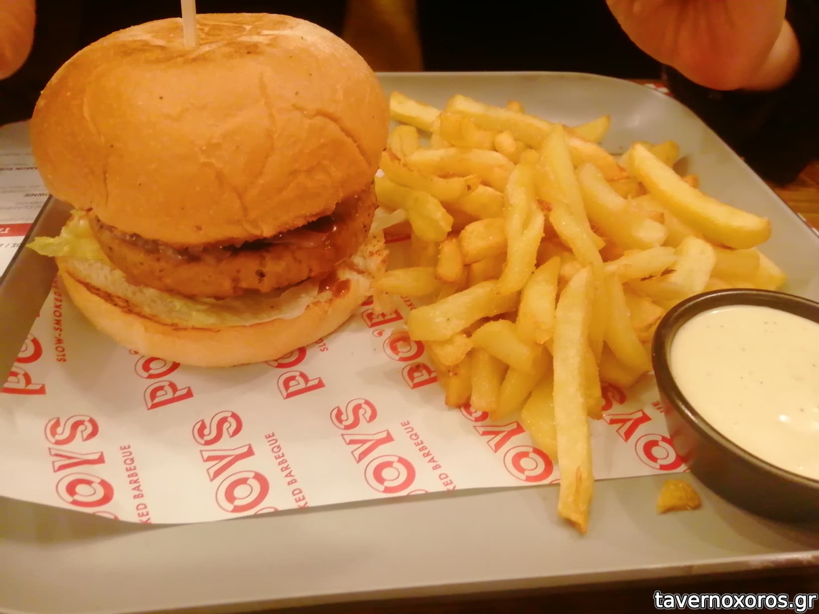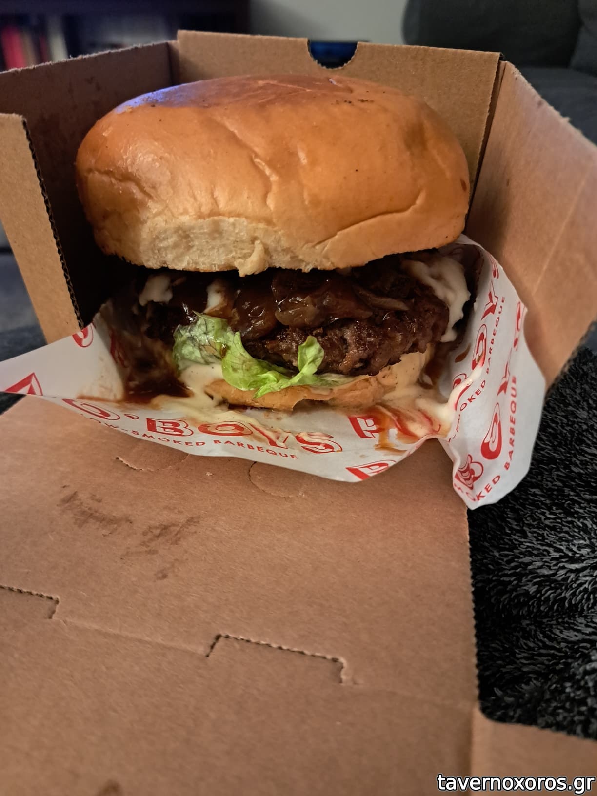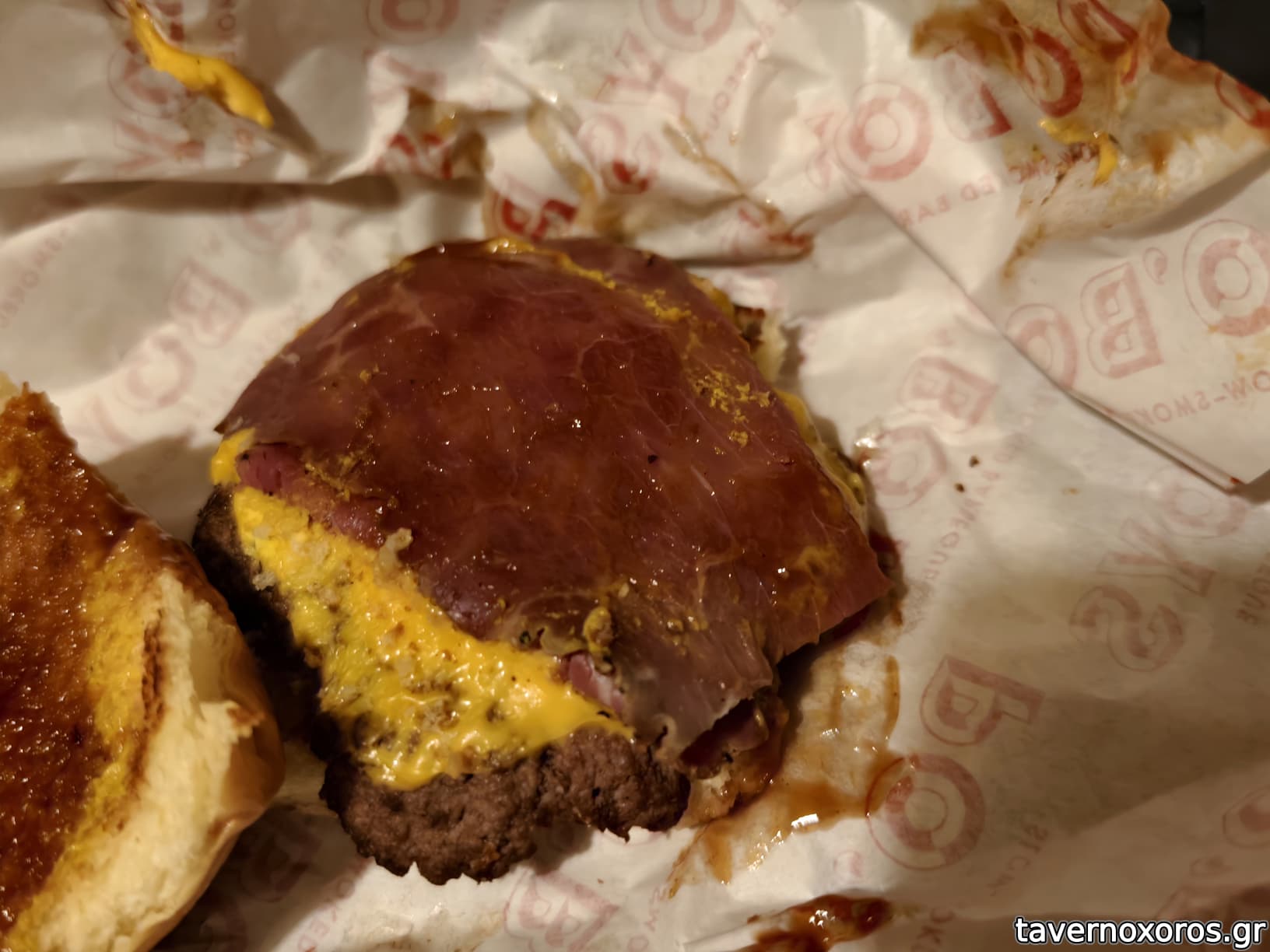 Ένα pitmaster burger με καπνιστή πανσέτα και fondeu τυριών πολύ νόστιμο και κάπως καλύτερο σε μέγεθος.