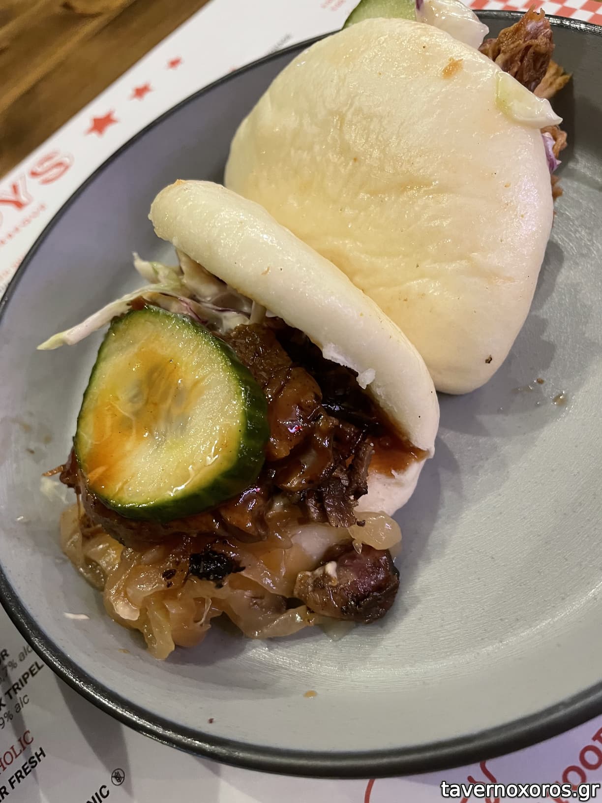 Δοκίμασα 2 bao bun, ένα με brisket και ένα με pulled pork. Σε ρωτάνε τι θέλεις για συνοδευτικό και είπα να δοκιμάσω την πατατοσαλάτα.