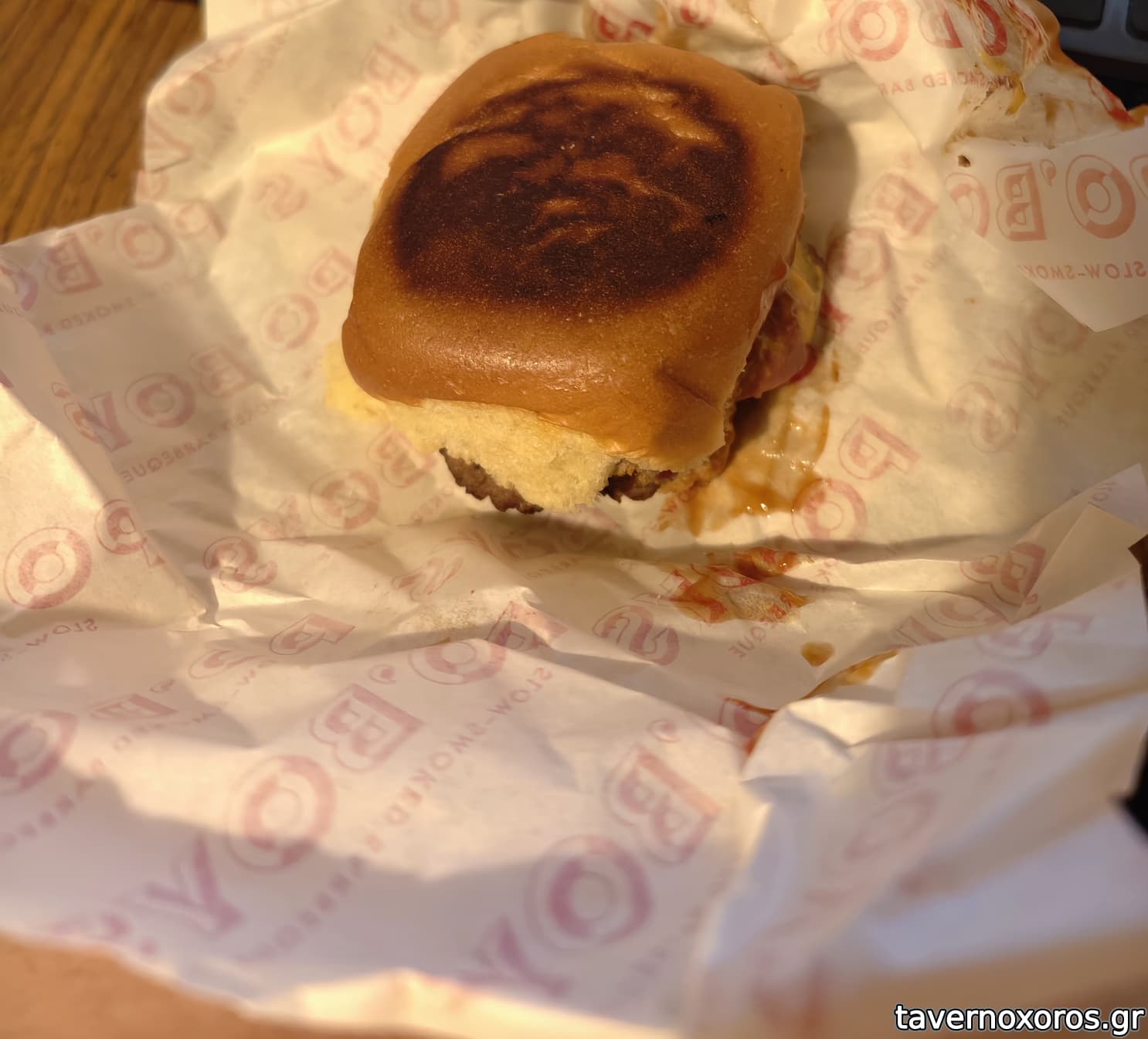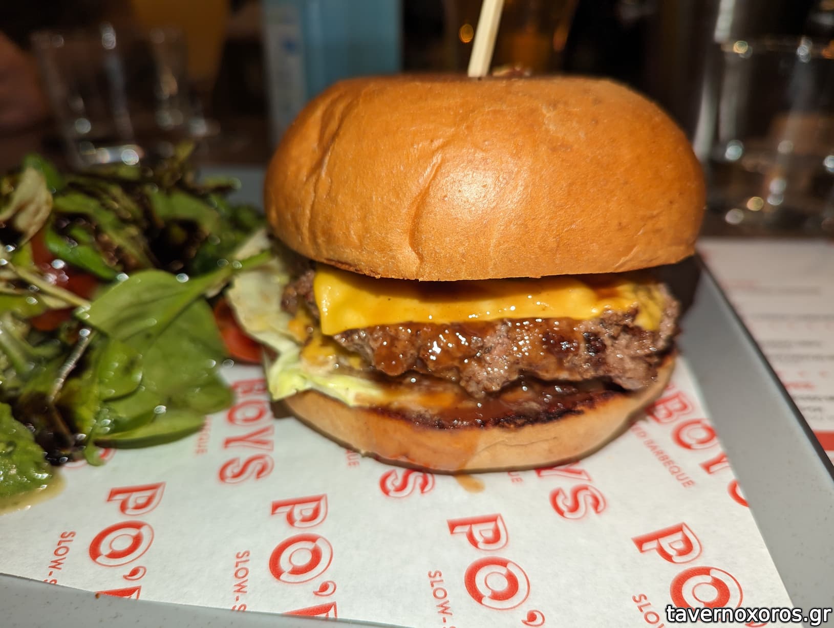 "Double Smashed Cheeseburger" (μια χαρά, καλό μπιφτέκι, κακό ψωμάκι)