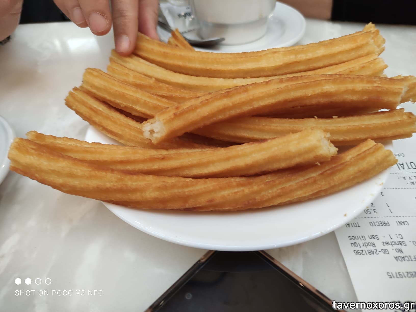 Σοκολάτα συνοδεία churros (πολύ καλή)