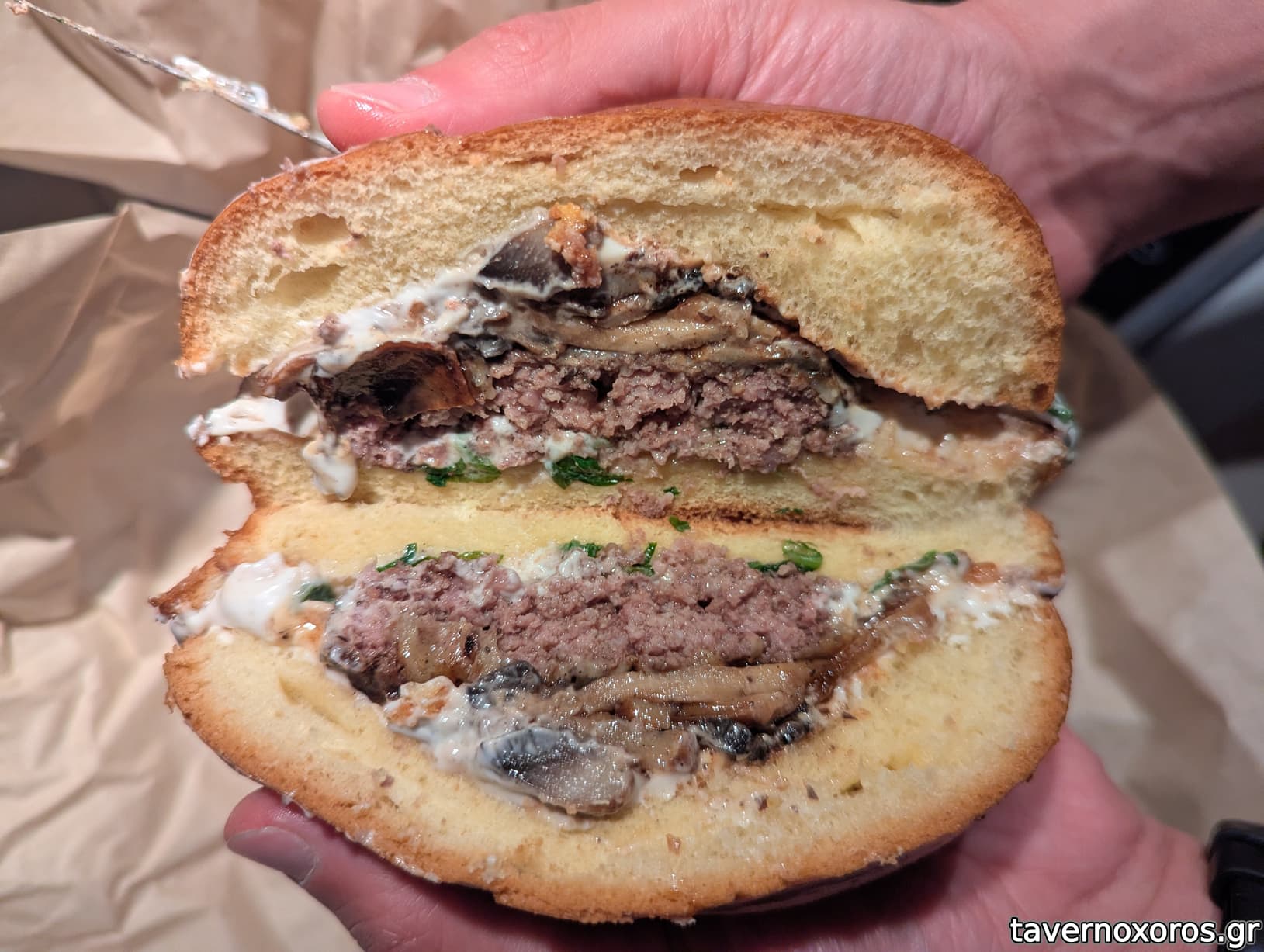 Το αποτέλεσμα είναι ένα ΤΕΡΑΣΤΙΟ και χορταστικό burger. Το μπιφτέκι σωστά ψημένο και με πραγματική μοσχαρίσια γεύση. Στο σύνολο, ο συνδιασμός με τρούφα και μανιτάρια δεν μου έκατσε πολύ καλά αλλά αυτό είναι προσωπική άποψη, την άλλη φορά θα δοκιμάσω κάποιο πιο απλό. Οι φρέσκες πατάτες, μια χαρά.