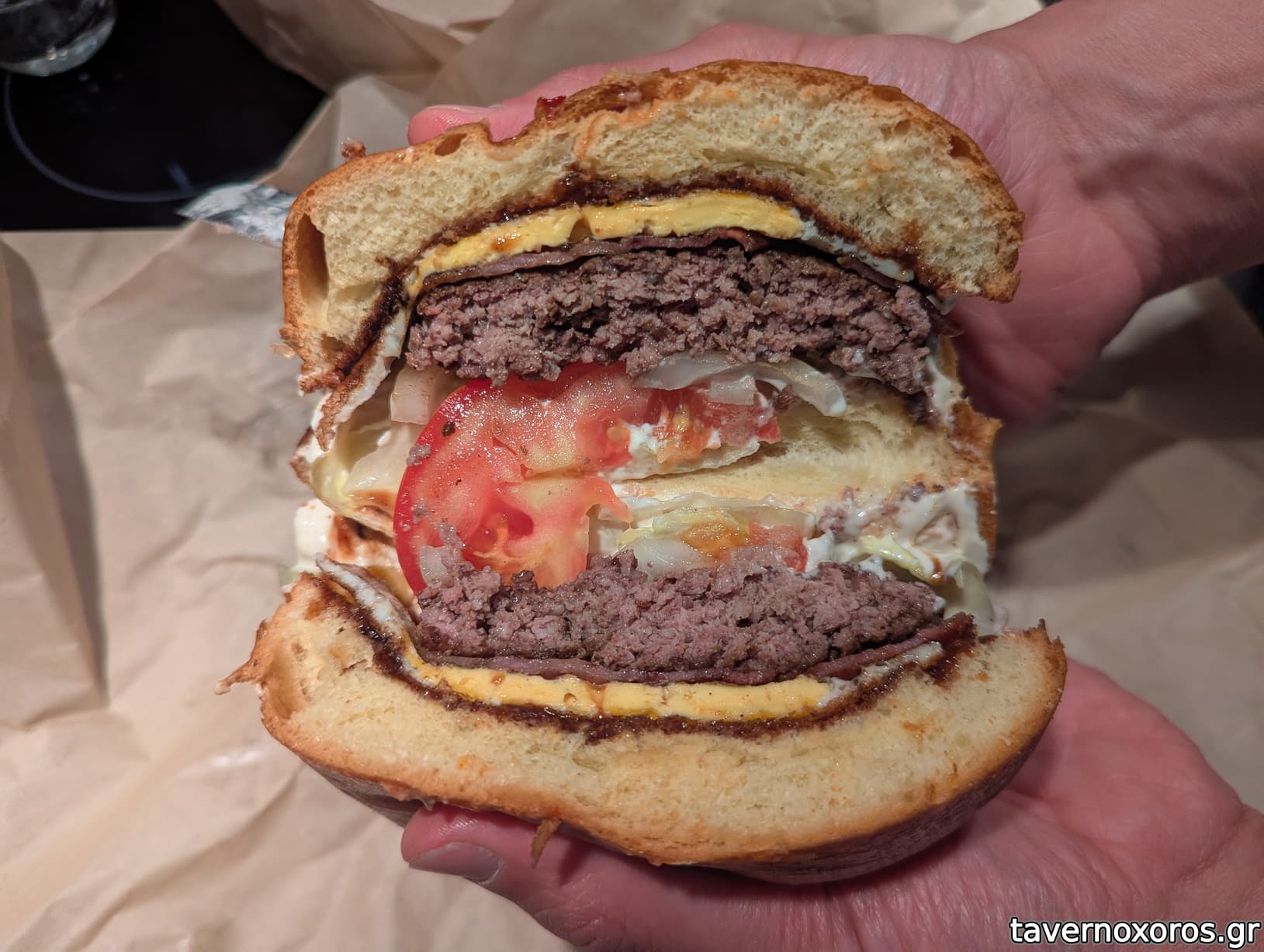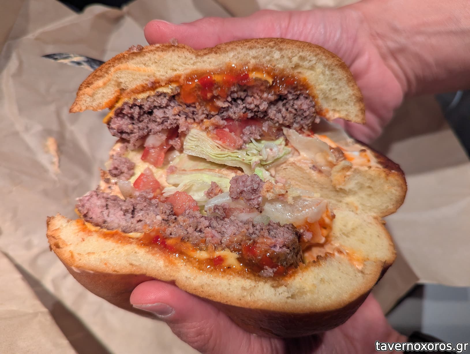 Στο κατάστημα, οι τιμές είναι αρκετά πιο χαμηλές, 8 ευρώ κόστισε το burger + 1.