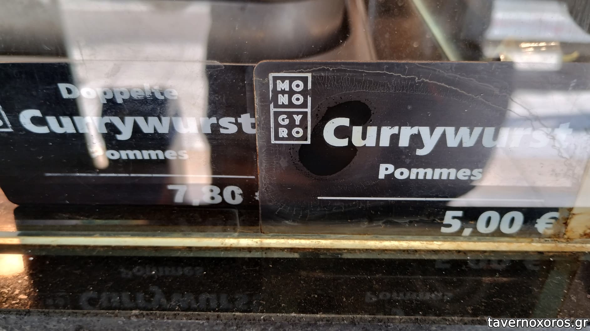 Άσχετες κρυφές πινακίδες για currywurst, δεν αναφέρεται πουθενά κάτι ανάλογο