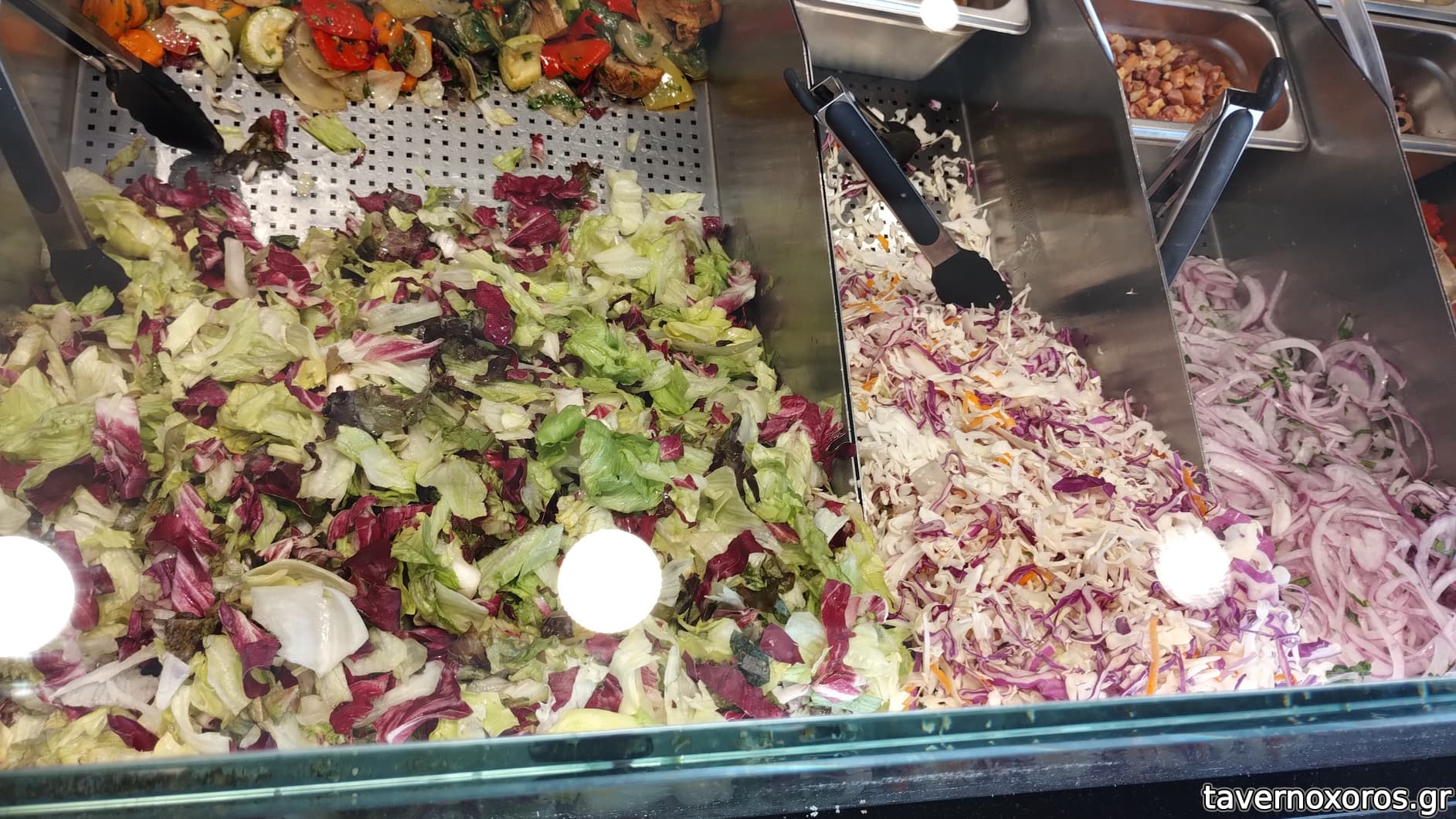3 από τις 4 σαλάτες χωρίς χρέωση. Δεξιά υπάρχει και αγγουροντομάτα με μπακάλικα πιπεράκια
