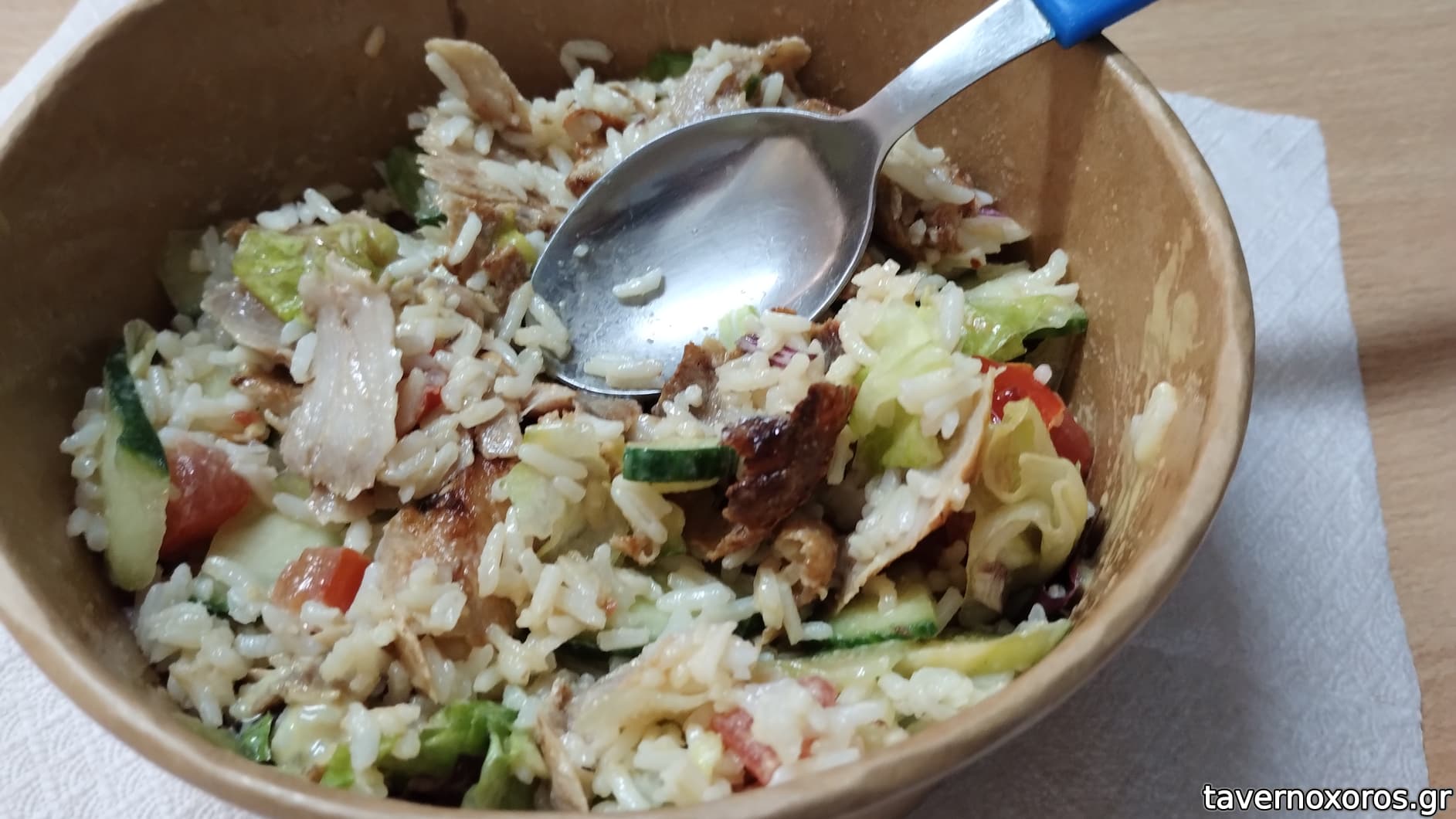 Rice bowl με γύρο κοτόπουλο (χαοτικά τεράστια μερίδα, καλό)