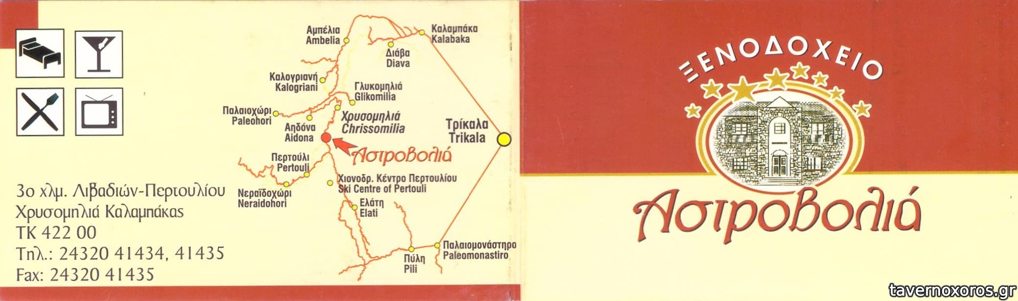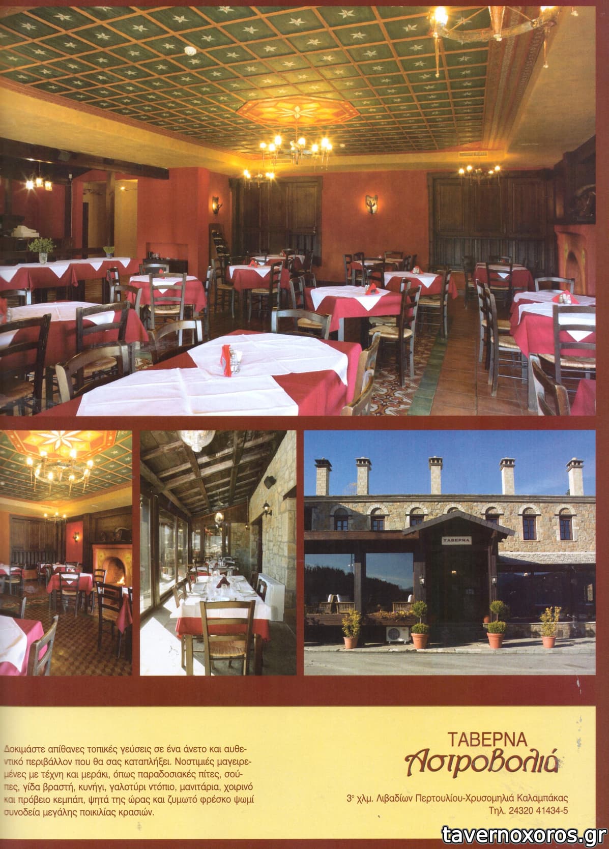 Διαμονή στο ξενοδοχείο. Δοκιμάσαμε αγριογούρουνο κρασάτο με δαμάσκηνα, κυδώνια και βερίκοκα, σαλάτα πράσινη, κεφαλοτύρι ψητό, κατσικάκι φρικασέ, λουκάνικο χωριάτικο με φρέσκιες τηγανητές πατάτες και κρασάκι χύμα μπρούσκο. Φαγητό εξαιρετικό, μερίδες μπαμπάτσικες, σέρβις γρήγορο, μουσική σωστή σε ένταση, τιμές ελαφρώς τσιμπημένες.