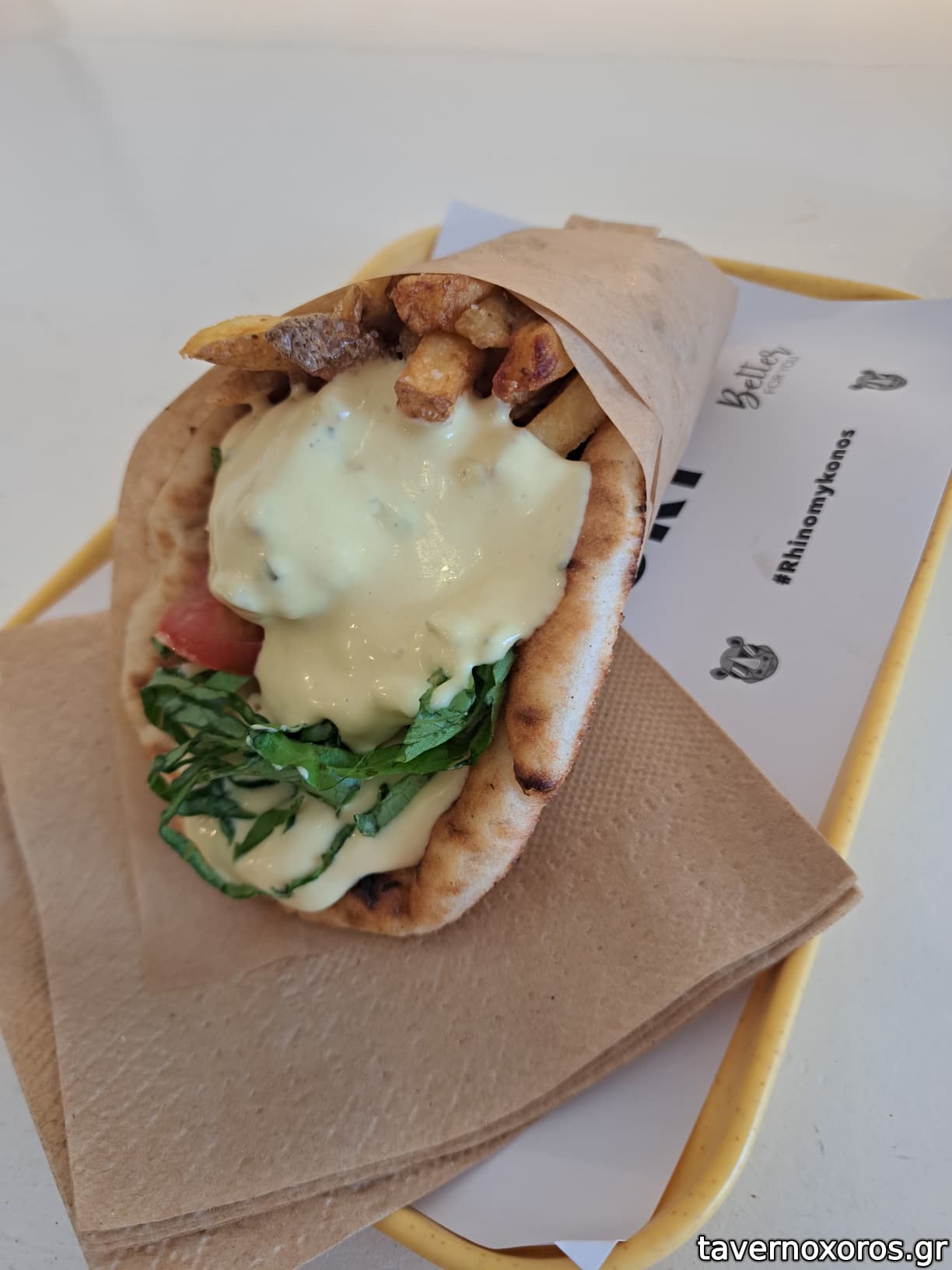 Πήρα μια πίτα με τόφου σαν κοτομπουκιες και μια σως σαν μουσταρδομαγιονεζα, που ήταν μια χαρά. Νόστιμο και αρκετουτσικο σε μέγεθος, με ικανοποίησε.