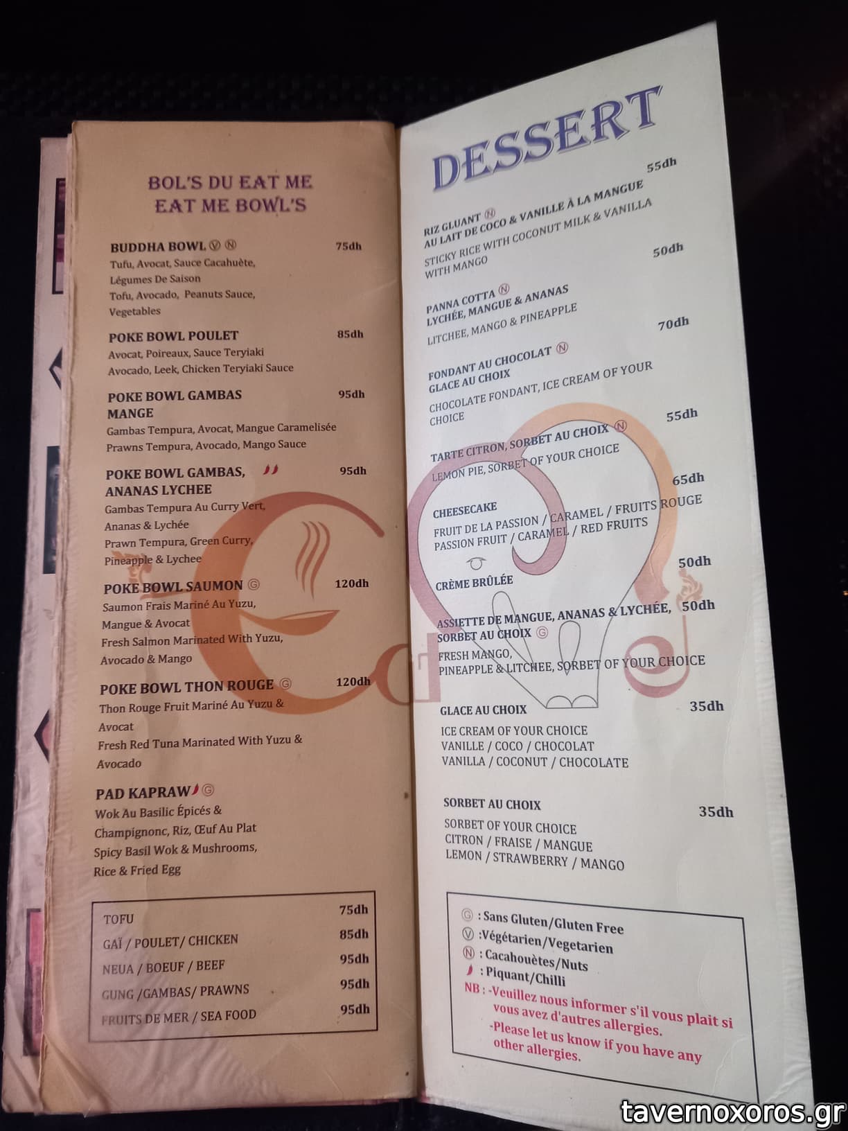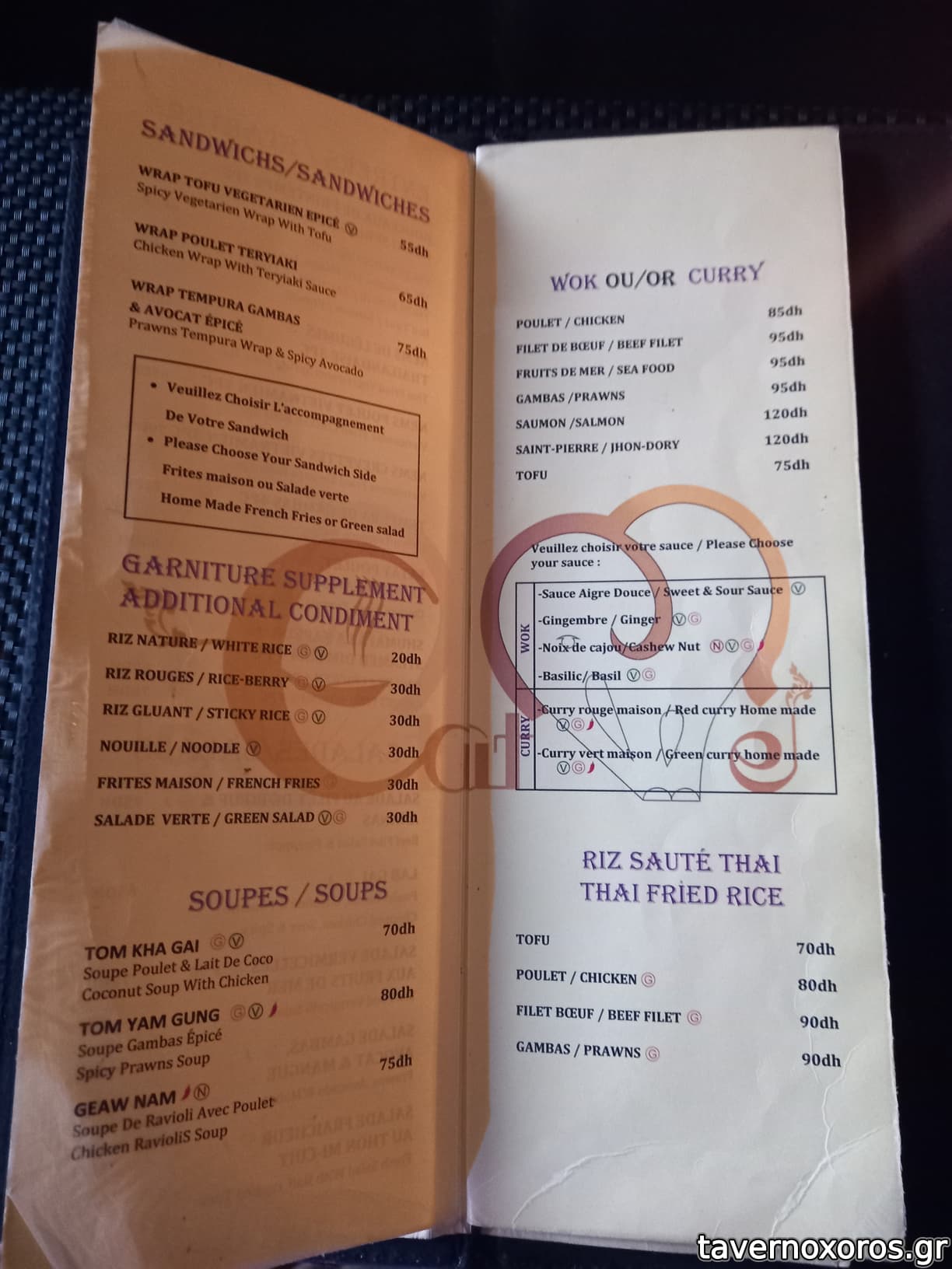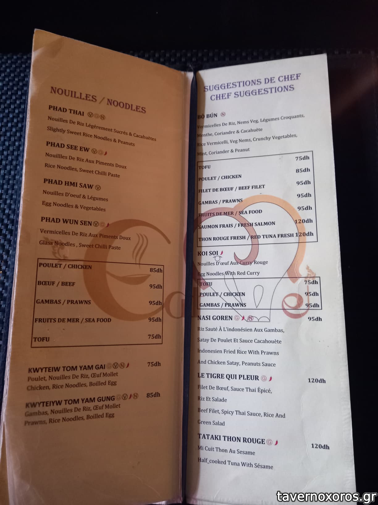 Ταϊλανδέζικο εστιατόριο στην περιοχή Gueliz του Μαρακές. Από όσα δοκίμασα κορυφαίο το Phad kapraw, ένα πιάτο με κοτόπουλο, μανιτάρια, ρύζι και αυγό αλλά κυρίως μια υπέροχη και λίγο γλυκιά σάλτσα. Το σέρβις πολύ ευγενικό από το ζευγάρι του μαροκινού ιδιοκτήτη και της ταϊλανδέζας συζύγου του.