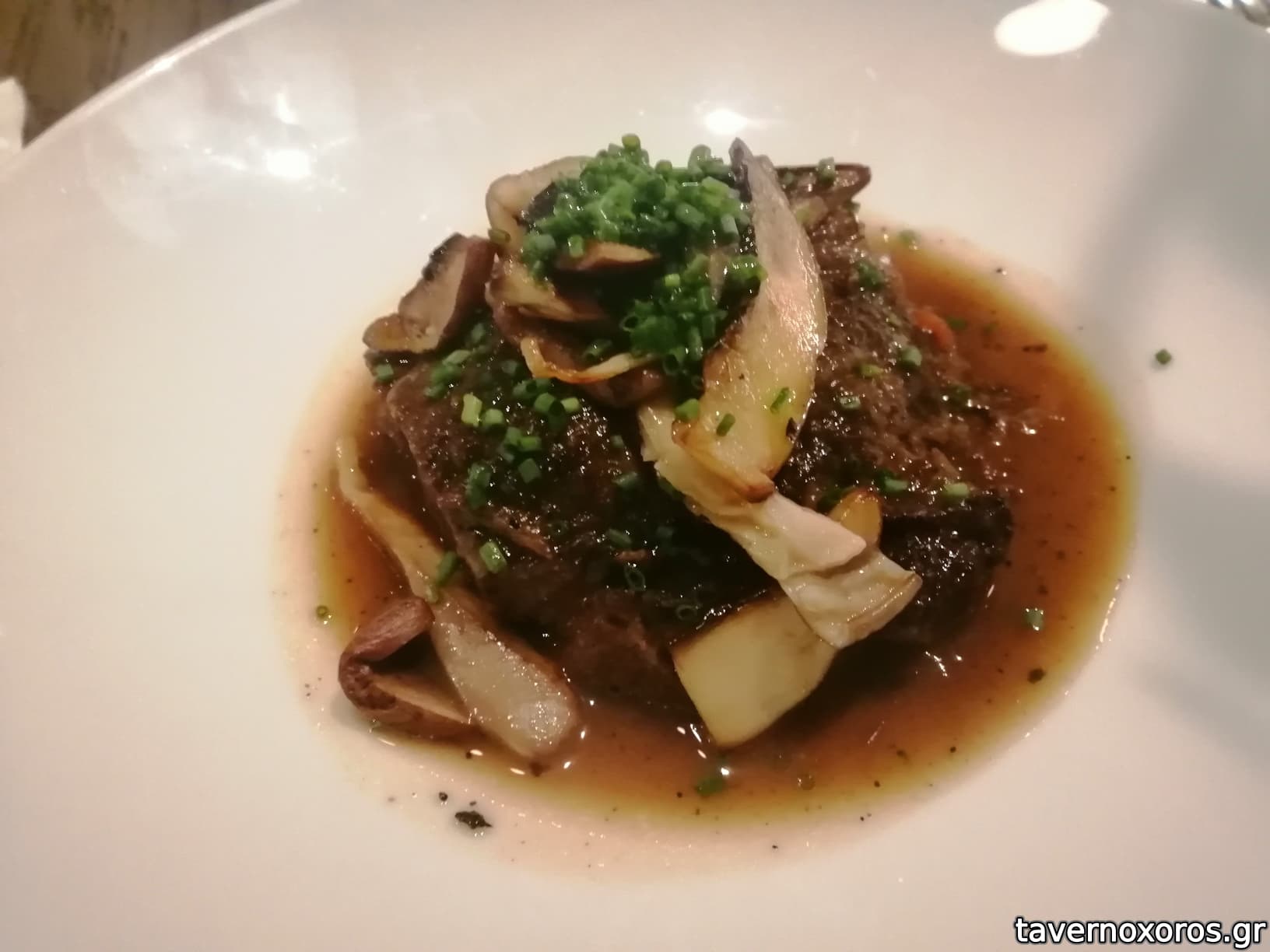 "Μάγουλα με άγρια μανιτάρια και σάλτσα 5 μπαχαρικών"