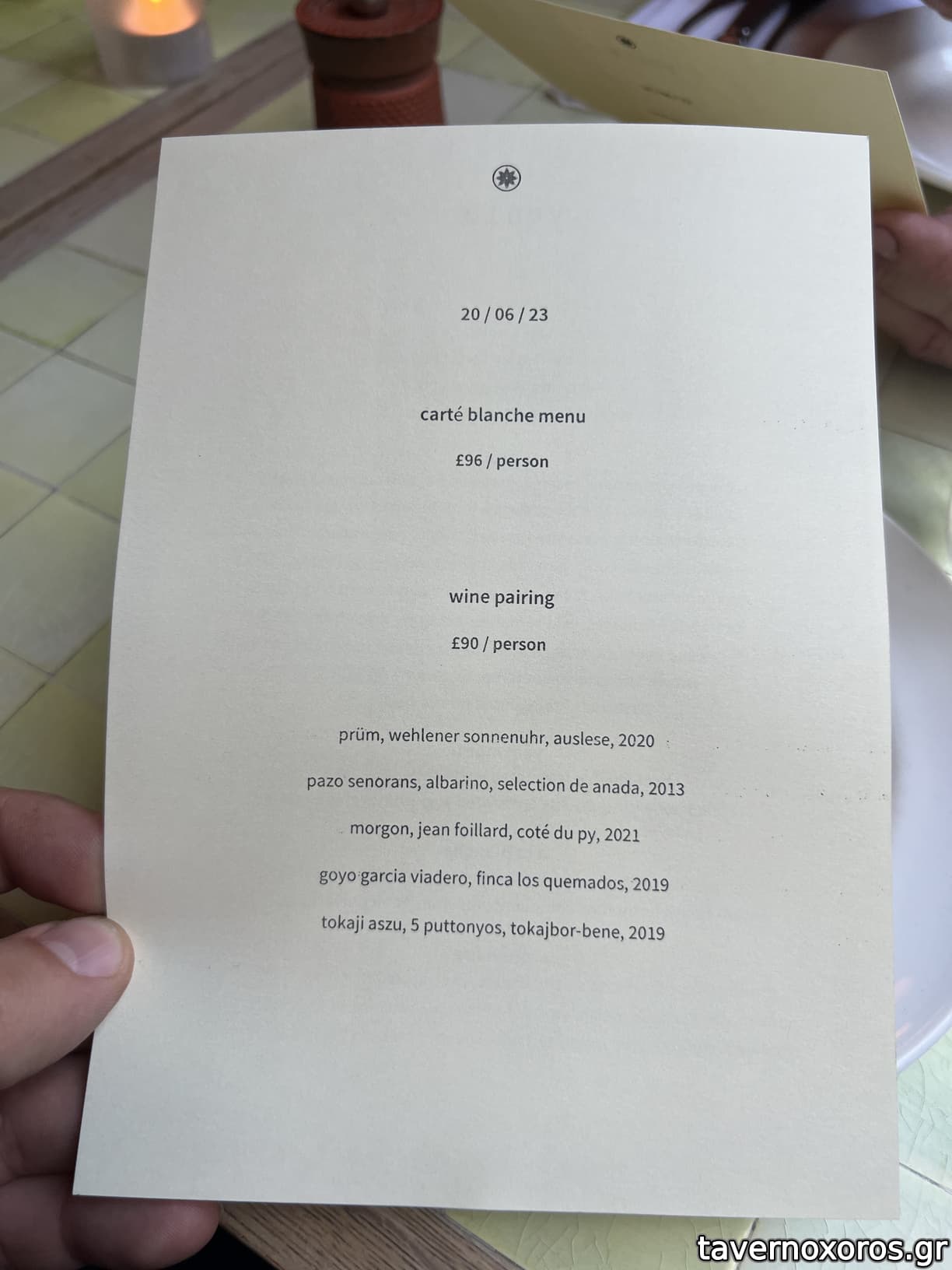 Τιμές £100 το άτομο για πλήρες γεύμα.