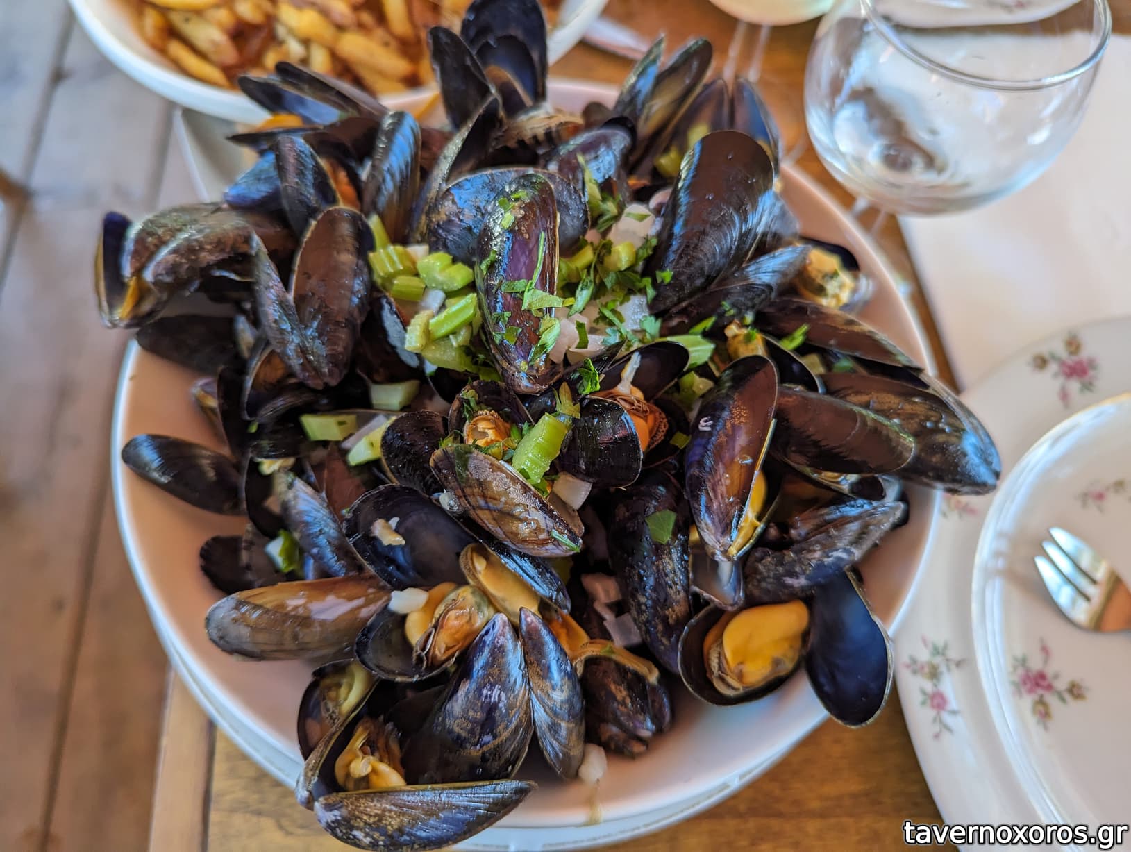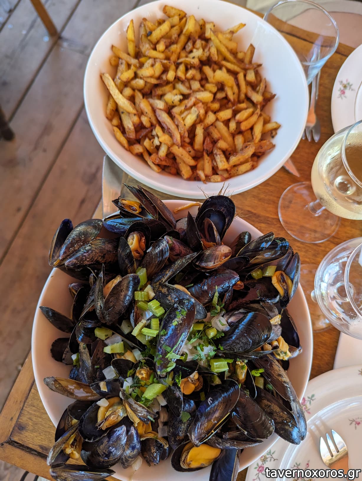Moules frites maison (ok, έχω φάει πολύ καλύτερα, τα μύδια μικρά, το ζουμί καλό με σέλινο-βούτυρο-κρασί, οι πατάτες ήθελαν αλλαγή στο λάδι)