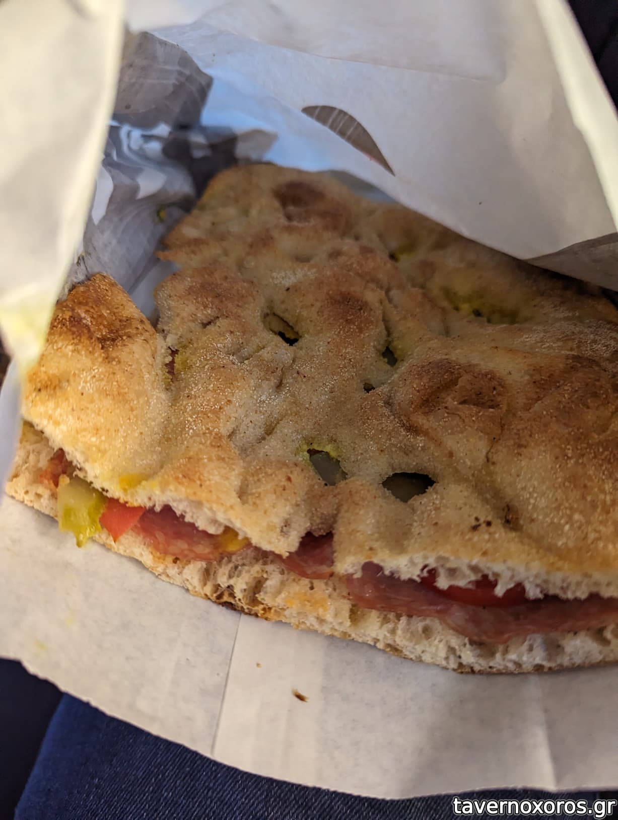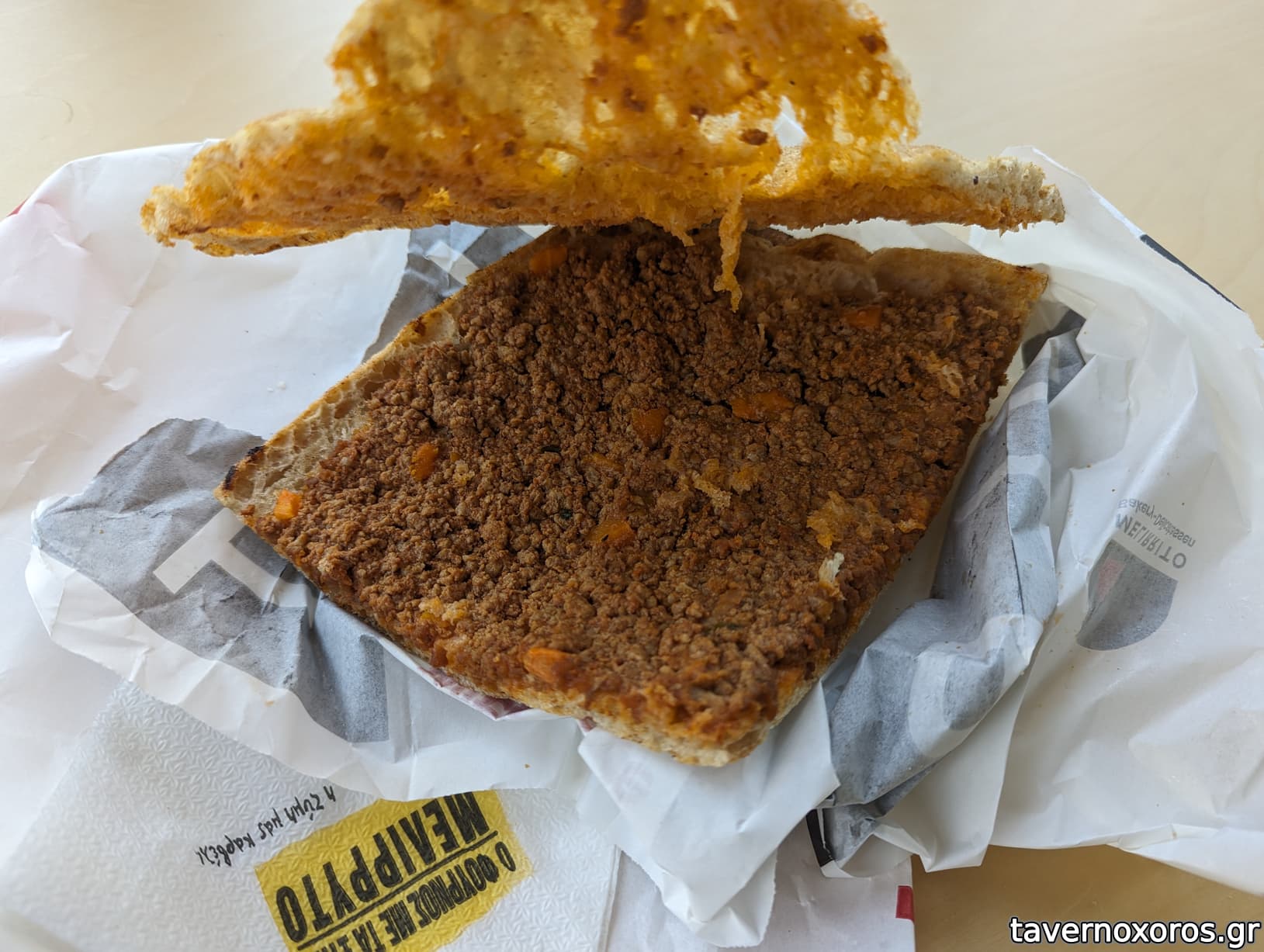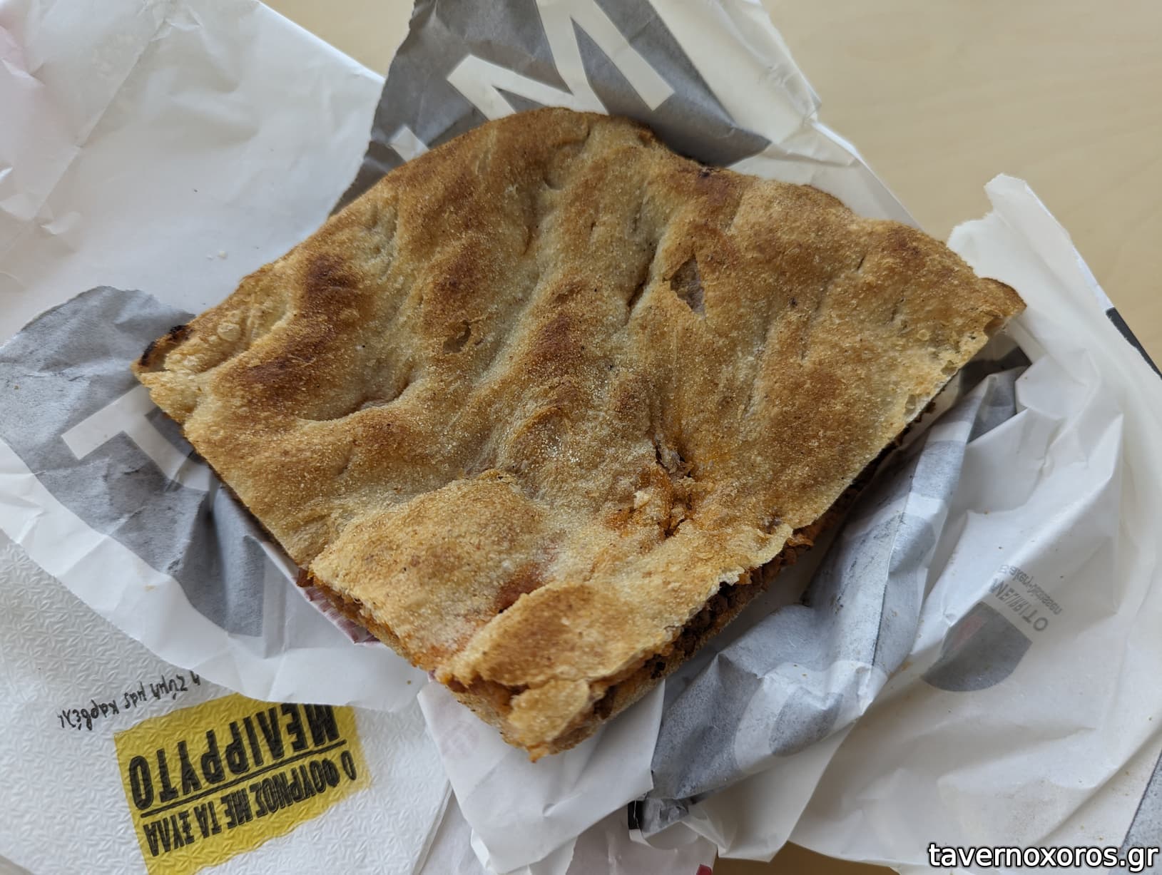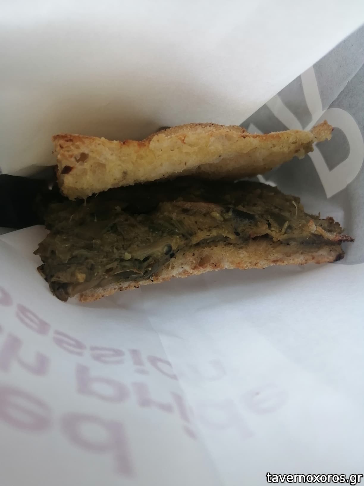 Αυτό καταναλώθηκε ώρες αργότερα, στο σπίτι, όποτε το έβαλα 5 λεπτά στο φούρνο πρώτα, έπειτα από υπόδειξη της υπαλλήλου.