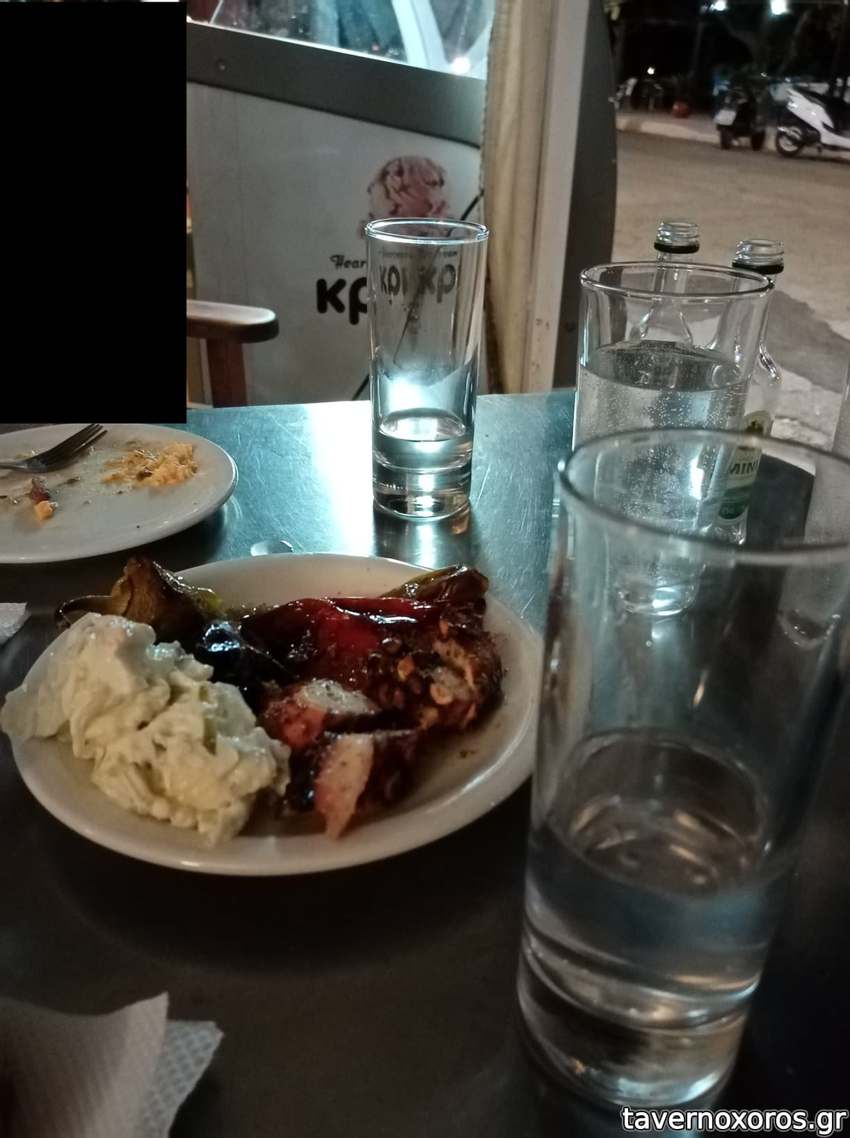 Το επισκεφθήκαμε και βραδάκι τόσο για τους λουκουμάδες όσο και για το τσίπουρο με μεζέ. Το τσίπουρο παραγωγής τους (επιλέξαμε με γλυκάνισο, καλό) και ο μεζές ό,