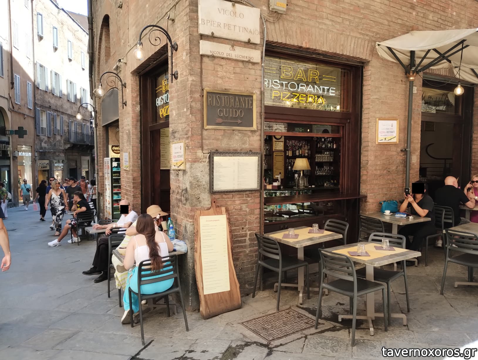 Λύση κάπως ανάγκης πάνω στον κεντρικό πεζόδρομο της Σιένα, την via Banchi di Sopra.