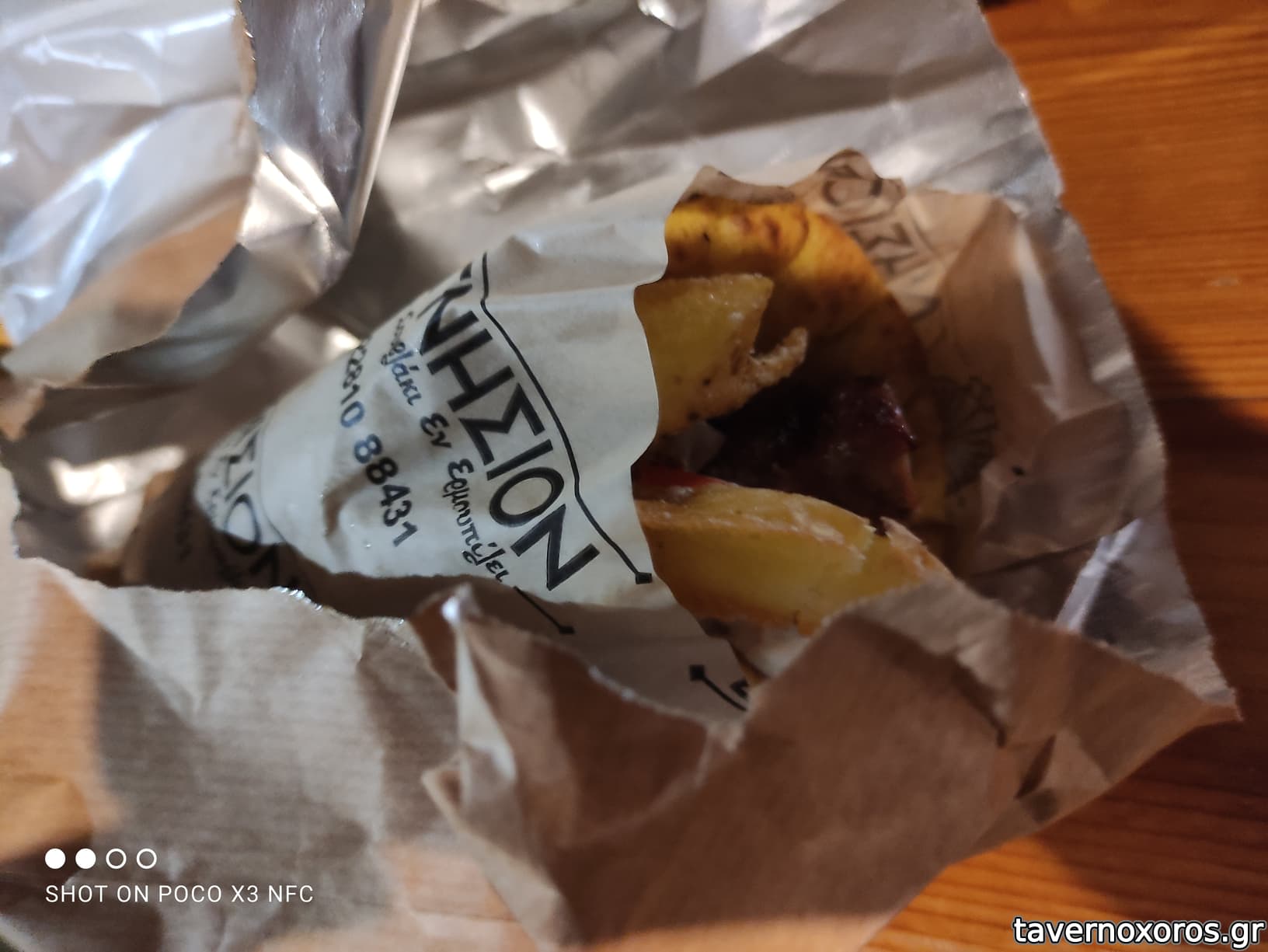 Με 2,2€ παίρνεις τεμάχιο σουβλακι σε ένα σακουλάκι με λίγες πατάτες και δυο φετούλες ψωμί.