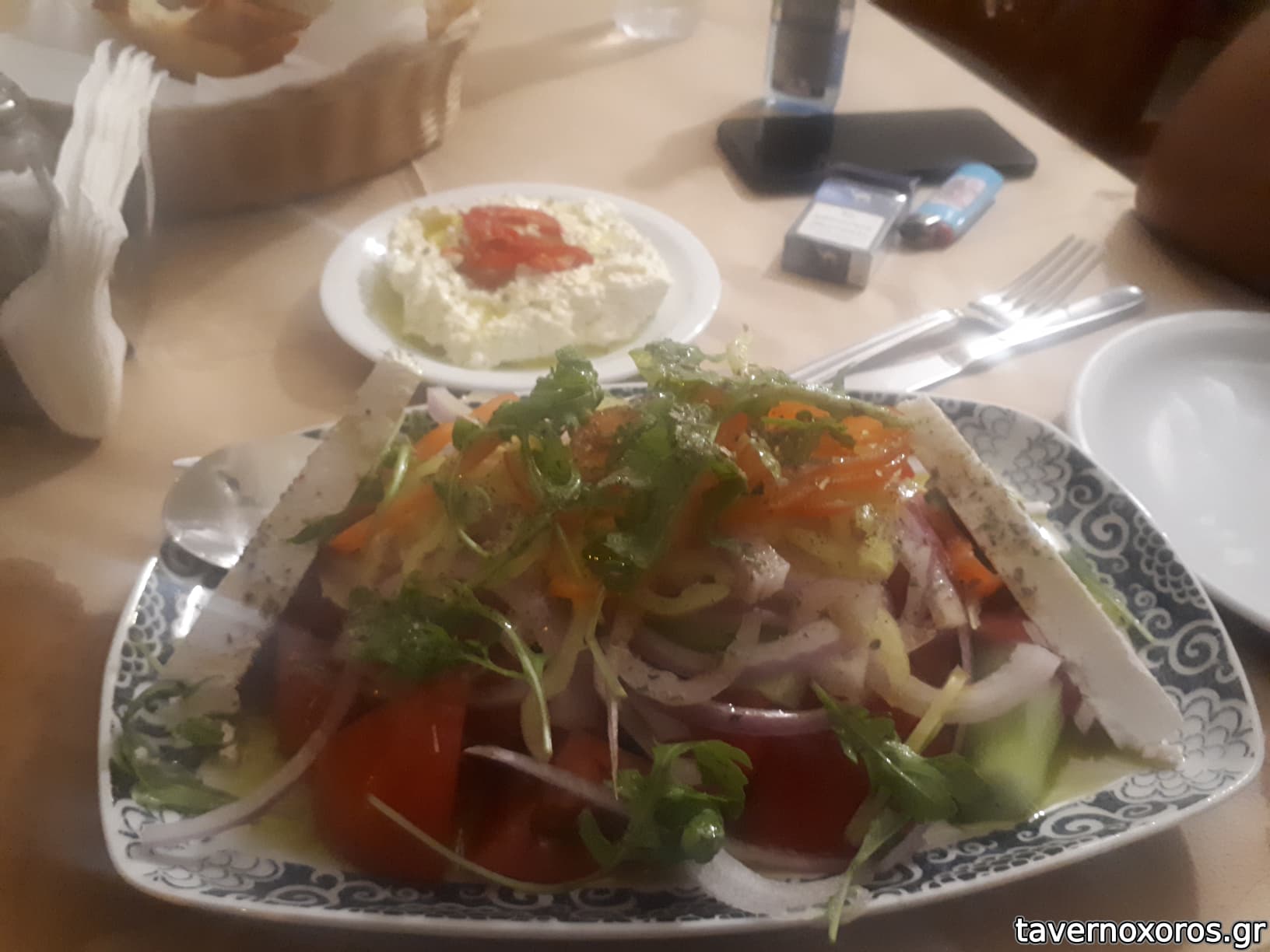 Η χωριάτικη σαλάτα πλούσια και εντυπωσιακή, τζατζίκι και μελιτζανοσαλάτα χειροποίητες πάρα πολύ καλές. Τσίπουρο πολύ καλό, σέρβις άψογο.