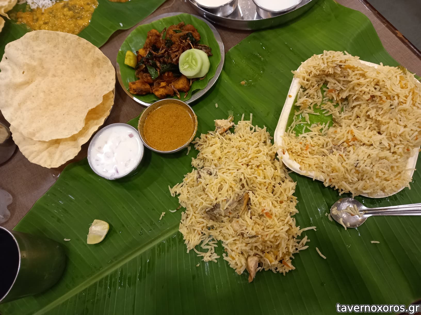 Παραδοσιακό ινδικό εστιατόριο στο κέντρο της πόλης Μάισορ στη νότια Ινδία. Το φαγητό σερβίρεται πάνω σε φύλλα μπανάνας και το σύνηθες είναι να τρώγεται με τα χέρια (εμείς ζητήσαμε κουτάλι...). Περιορισμένο μενού από το οποίο δοκιμάσαμε chicken biryani, που ήταν πολύ καλό και ένα πιάτο με διάφορες σως/σούπες που κάποιες ήταν μαγειρεμένες με διάφορα ήδη από φακες. Πολύ αυθεντική εμπειρία που ζήσαμε χάρη στην ινδή συνάδελφο που μας πήγε εκεί. Φάγαμε του σκασμού με 10 ευρώ συνολικά για τρία άτομα...