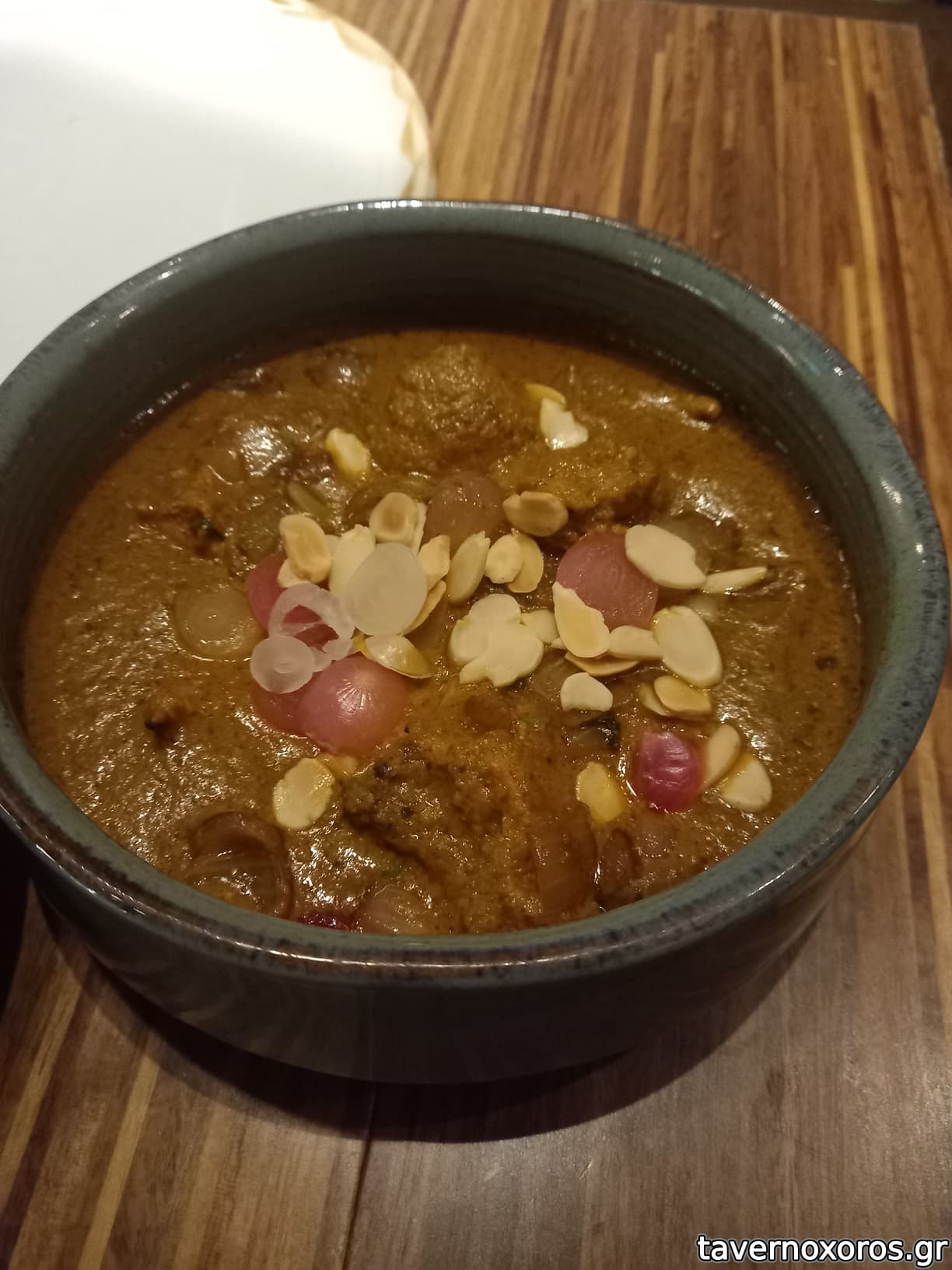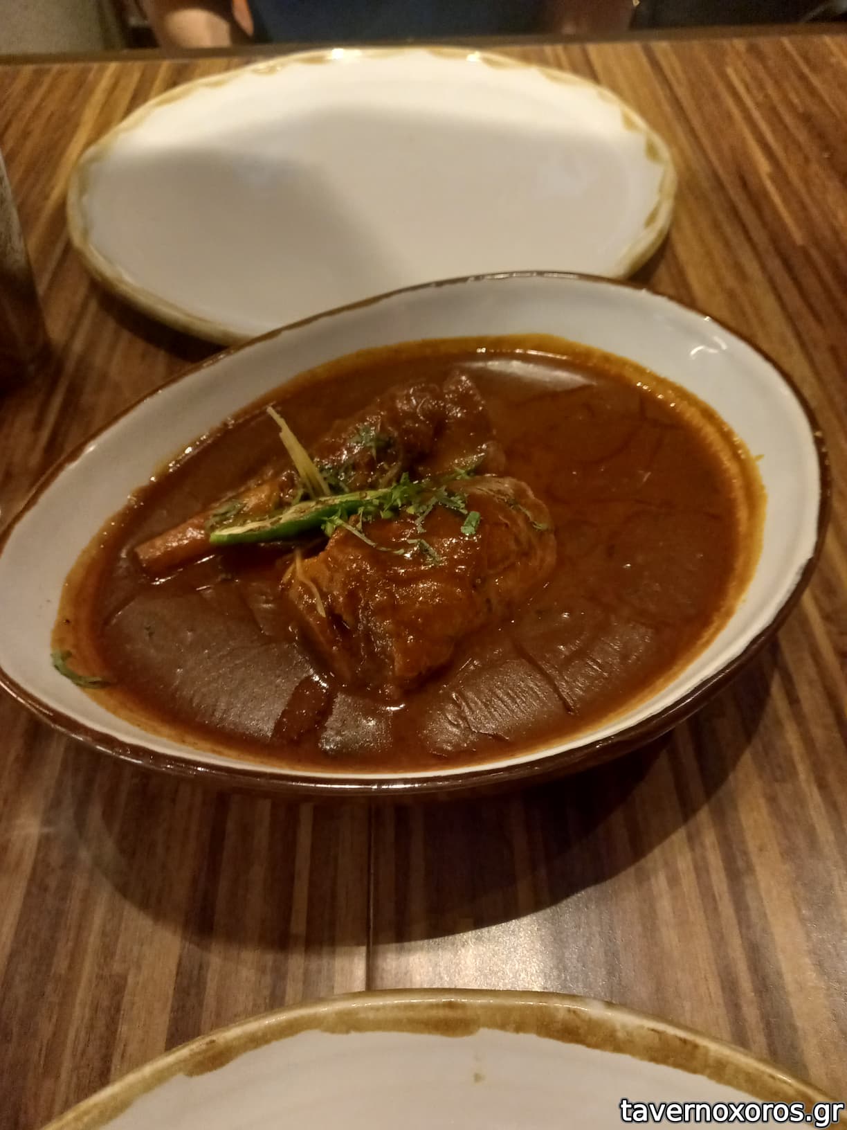 Loya murg pyaza: slow cooked chicken in spice blend (εξαιρετικό)