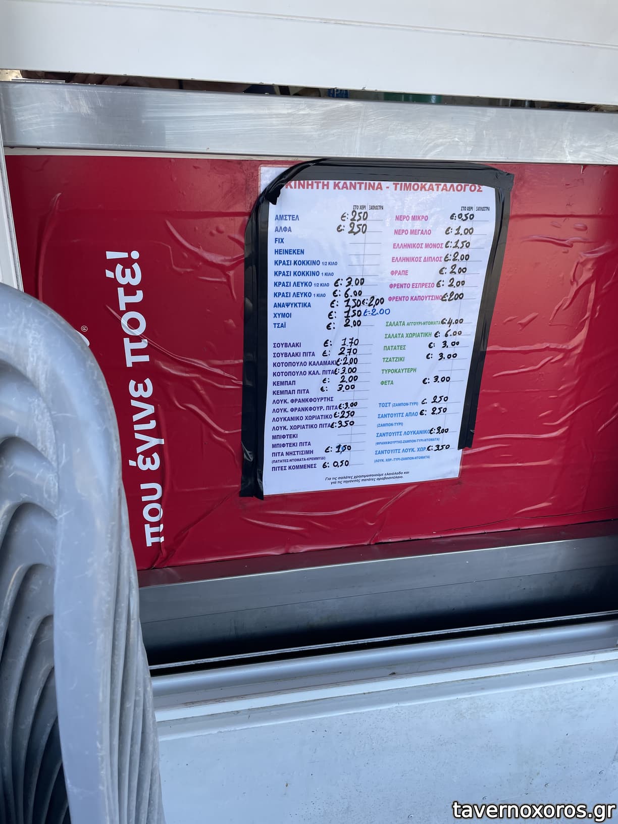 Έχει καμία 10ρια ξαπλώστρες και το απόγευμα ανάβει κάρβουνα. Γράφει σκέτο "καντίνα" αλλά είναι γνωστή με το επιθέτου του ιδιοκτήτη.