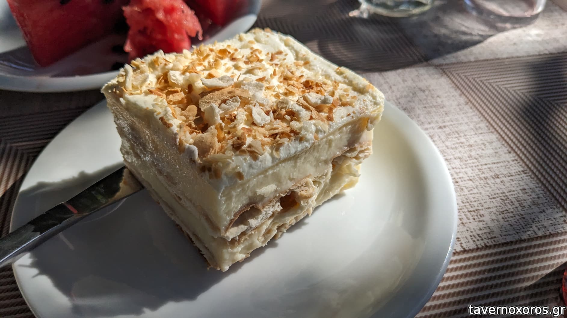 Μιλφέιγ (κερασμένο, με κρέμα από πρόβειο γάλα δικής τους παραγωγής)