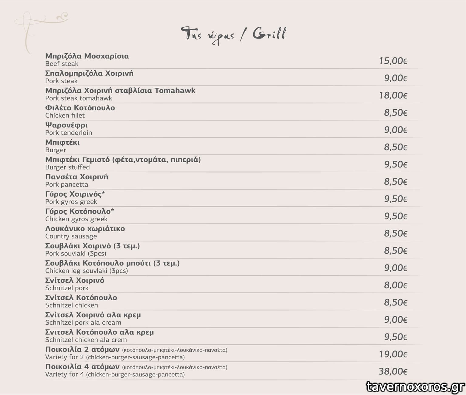| Λέξεις κλειδιά | #πλατεία, #εξωτερική θερμάστρα, #κοντοσούβλι, #μπιφτεκάκια, #παϊδάκια, #χοιρινή, #σουβλάκια, #ντάκος, #χαλούμι, #μετσοβόνε, #κολοκυθάκια, #γαλοτύρι, #μανιτάρια, #κοτόπουλο, #τηγανιά, #μοσχαρίσια μπριζόλα, #μπιφτέκι, #ψαρονέφρι, #πανσέτα, #γύρος, #λουκάνικο, #σνίτσελ, #σουτζουκάκια, #πρόβειο κοντοσούβλι, #ζυμαρικά, #μακαρονάδες |