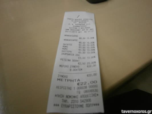 Δύο μερίδες μπακαλιάρος, δύο πατάτες, ψωμί, μία καυτερή πιπεριά, μια σκορδαλιά, μια σαλάτα μαρούλι και μία κάιζερ, σύνολο 28,5€. Νόστιμο αλλά πολύ ακριβό κατά την άποψη μου.