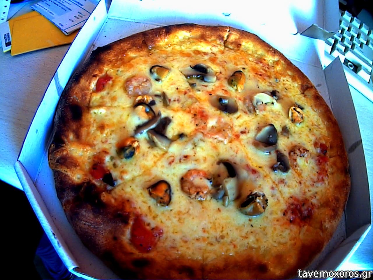 Οικογενειακή πίτσα Μαρινάρα (πολύ κακή, πάλι καλά που είχε μόνο 4 μύδια μετρημένα!)