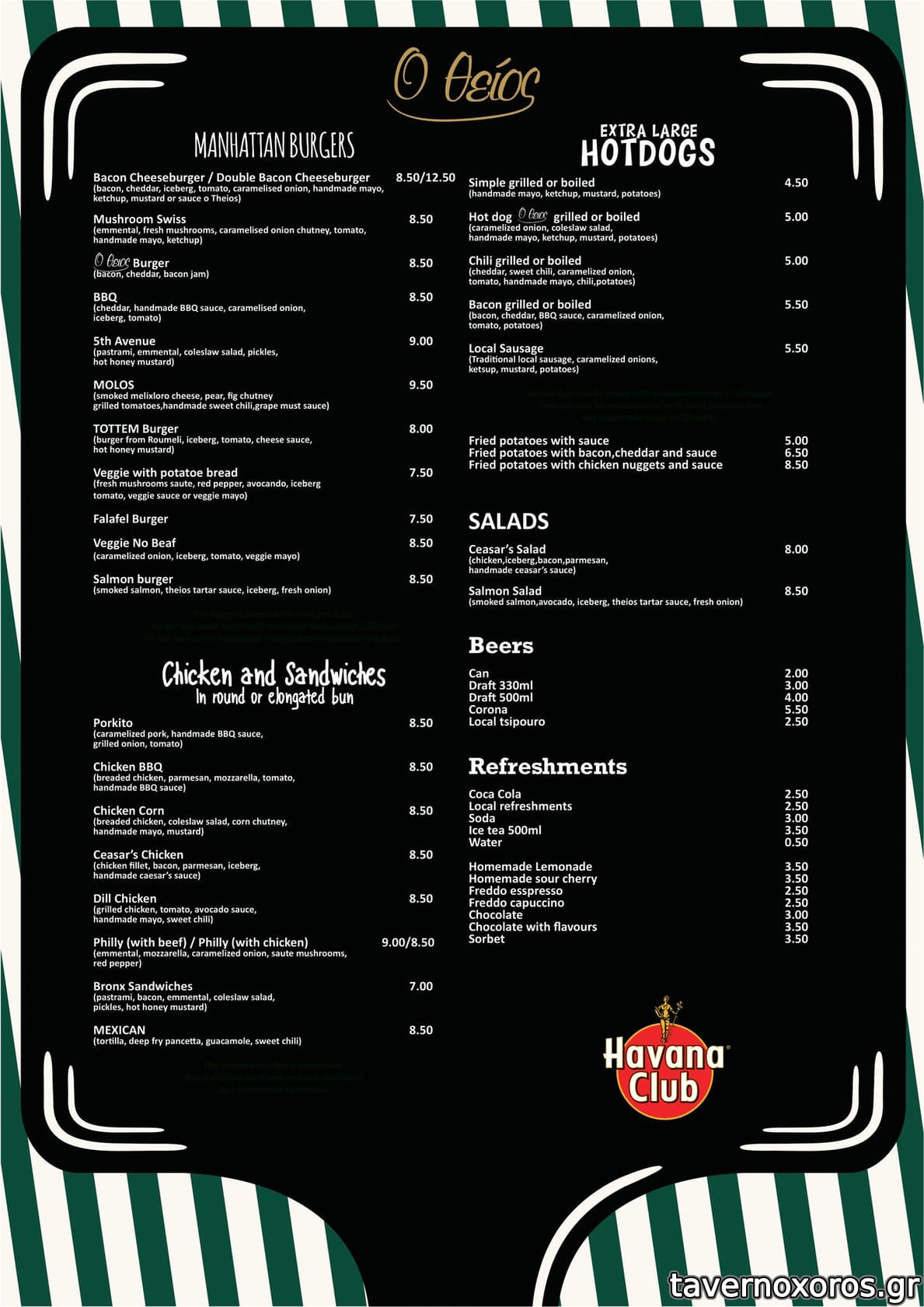 Αν βρίσκεστε στο νησί και θέλετε κάτι κόμφορτ για βράδυ μετά από βόλτα στην παραλία, αξίζει. Τιμές σε burgers και σάντουιτς 7,