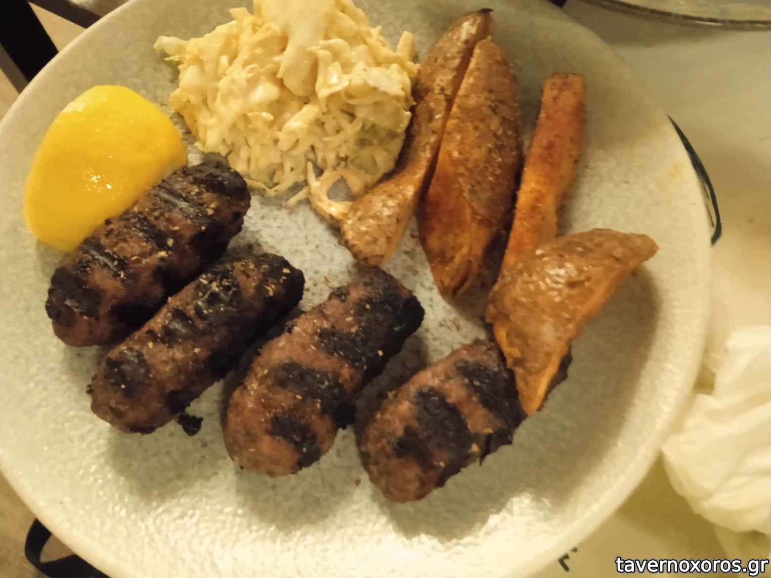 Σουτζουκάκια στη σχάρα με γλυκοπατάτες και coleslaw