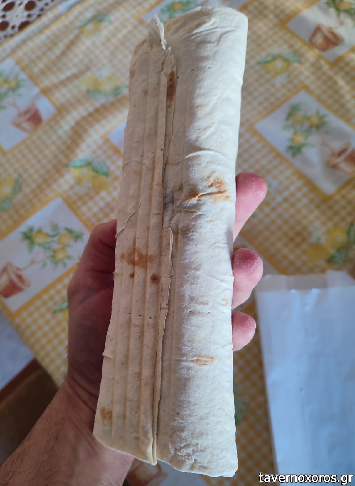 Μεγάλο, βαρύ, αρκετά χορταστικό και νόστιμο, ακροβατεί ανάμεσα σε πίτα γύρο χωρίς πατάτες και τοστ. Προσωπικά το βρήκα μια καλή εναλλαγή από τα κλασικά.