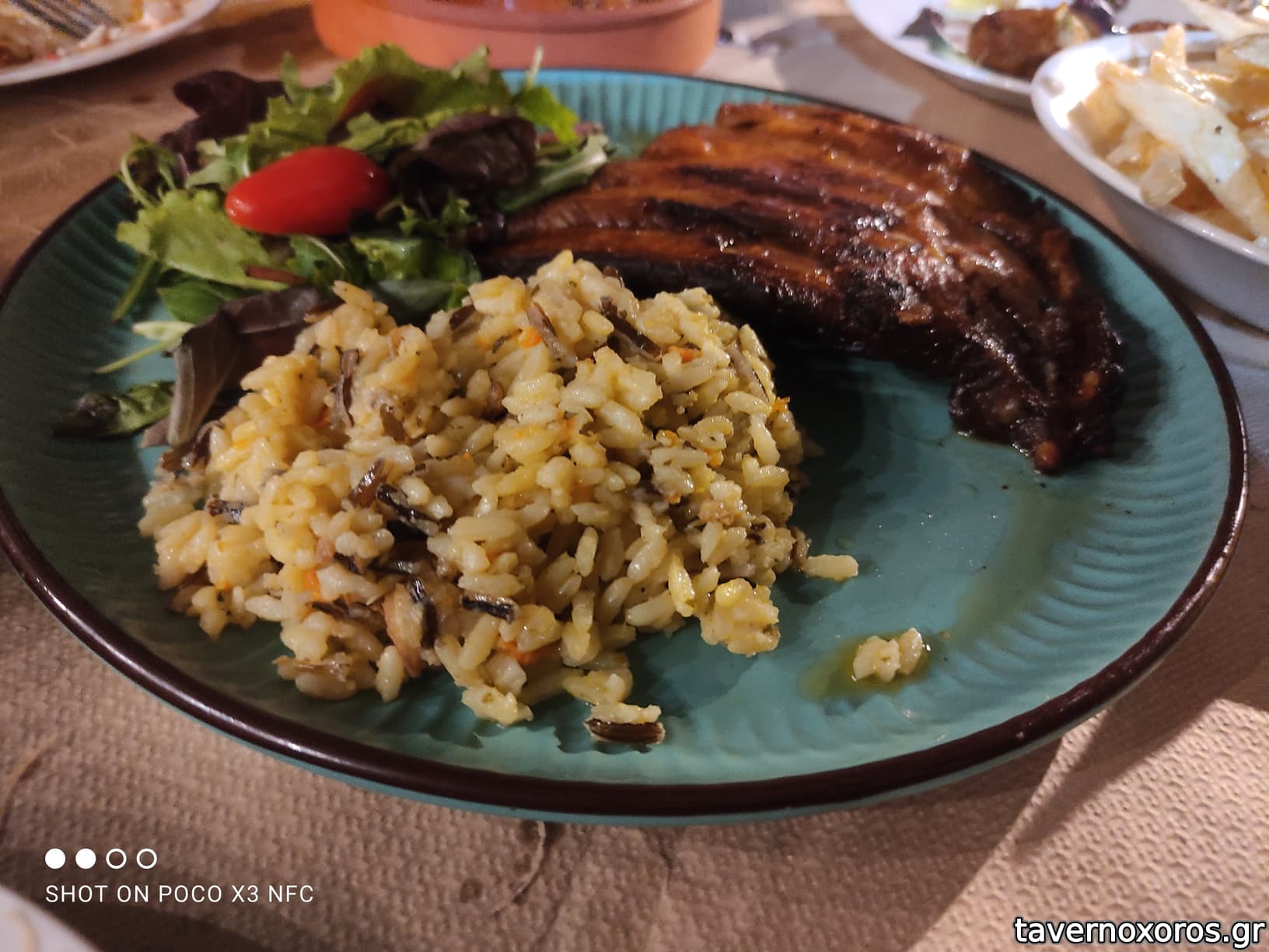 Μοσχαρισιος σιδηρόδρομος καλός, ντάκος καλός, πατάτες ορίτζιναλ καλές, κολοκυθοκεφτέδες αδιάφοροι, χοιρινά ribs αδιάφορα, κεφτεδάκια οκ κανταιφι τυριών οκ, 1,