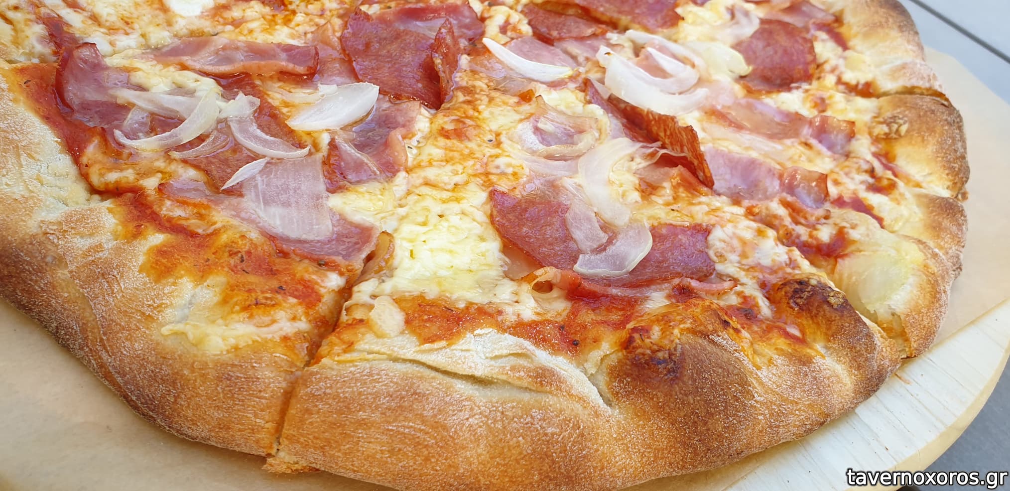 Laguna: Σάλτσα ντομάτας, gouda, μπέικον, σαλάμι Ουγγαρίας, κρεμμύδι