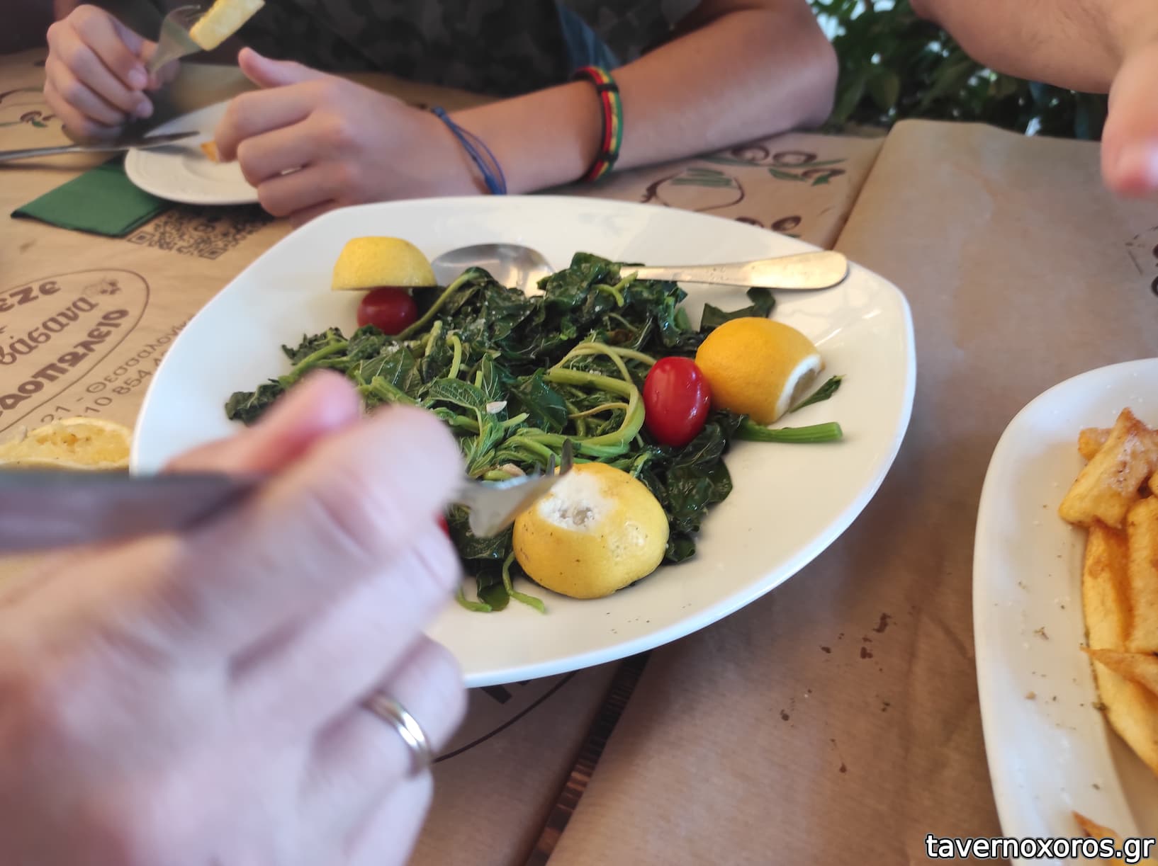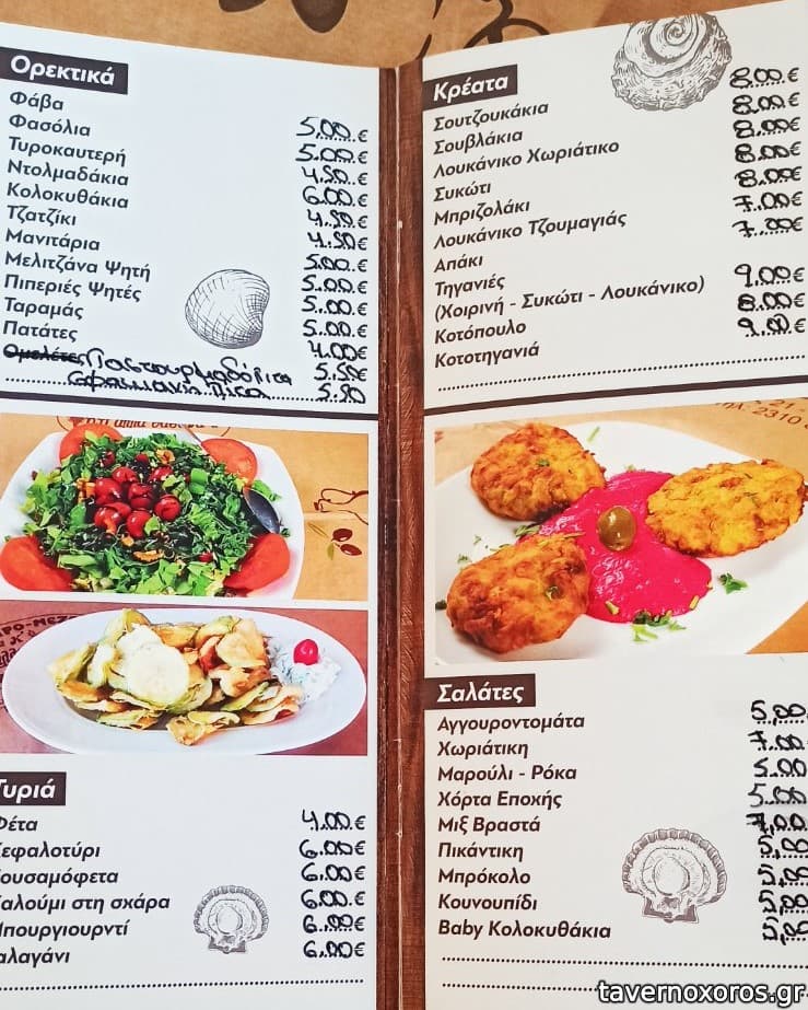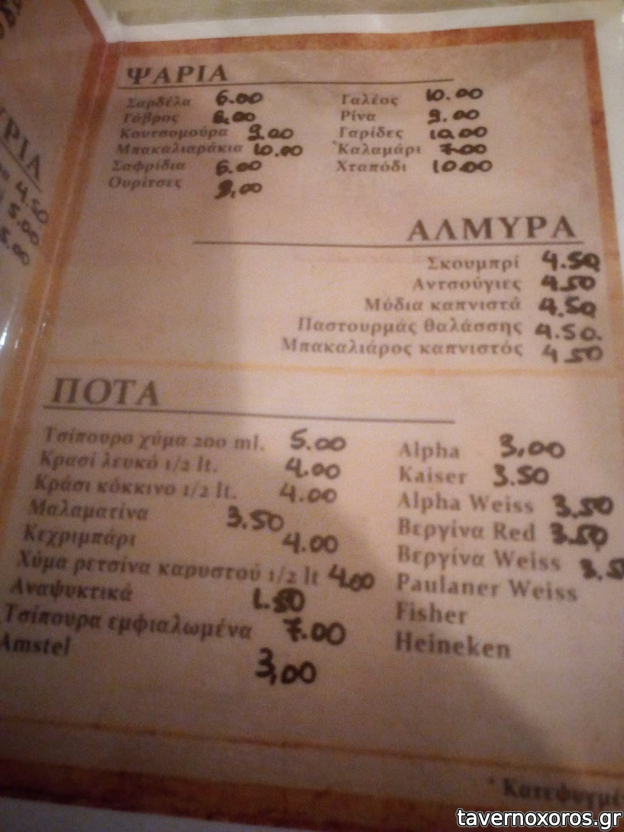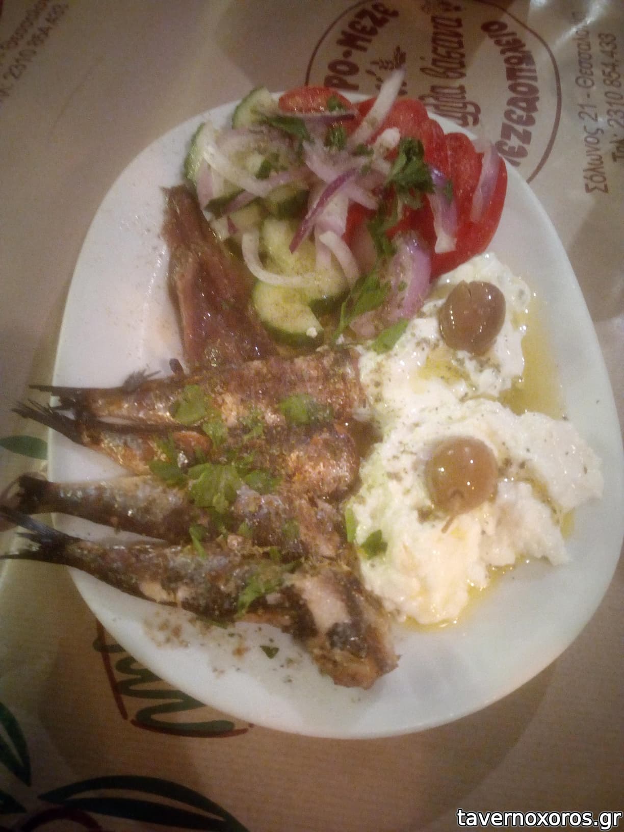 Όμορφος εξωτερικός χώρος και ατμόσφαιρα. Διάφορα ψαράκια/γαρίδες (ωραίες οι γαρίδες), σαλάτες, πατάτες, κεφαλοτύρι, ουζάκι κλπ. Τυπικό μενού συνοικιακής ταβέρνας/μεζεδοπωλείου.