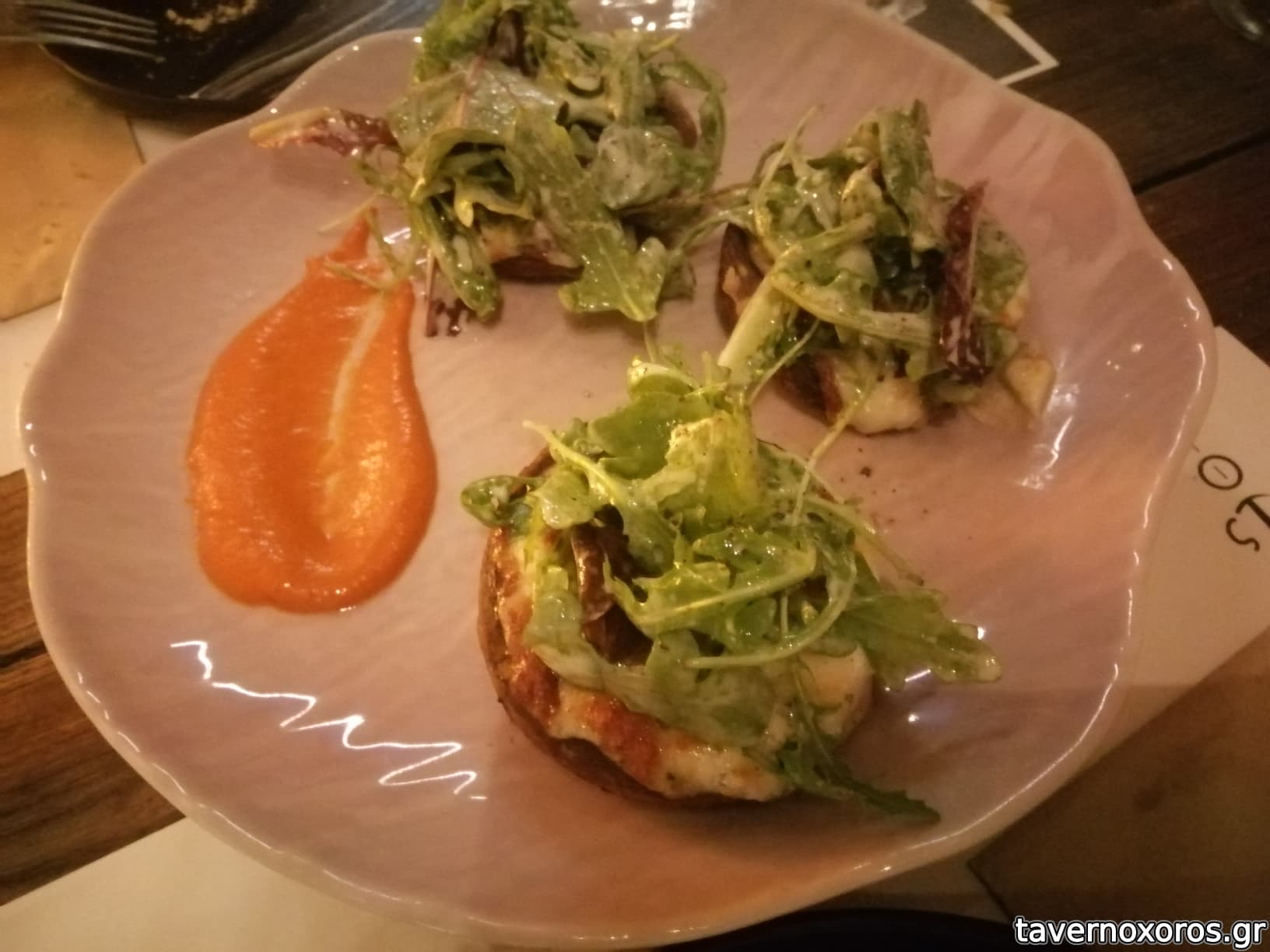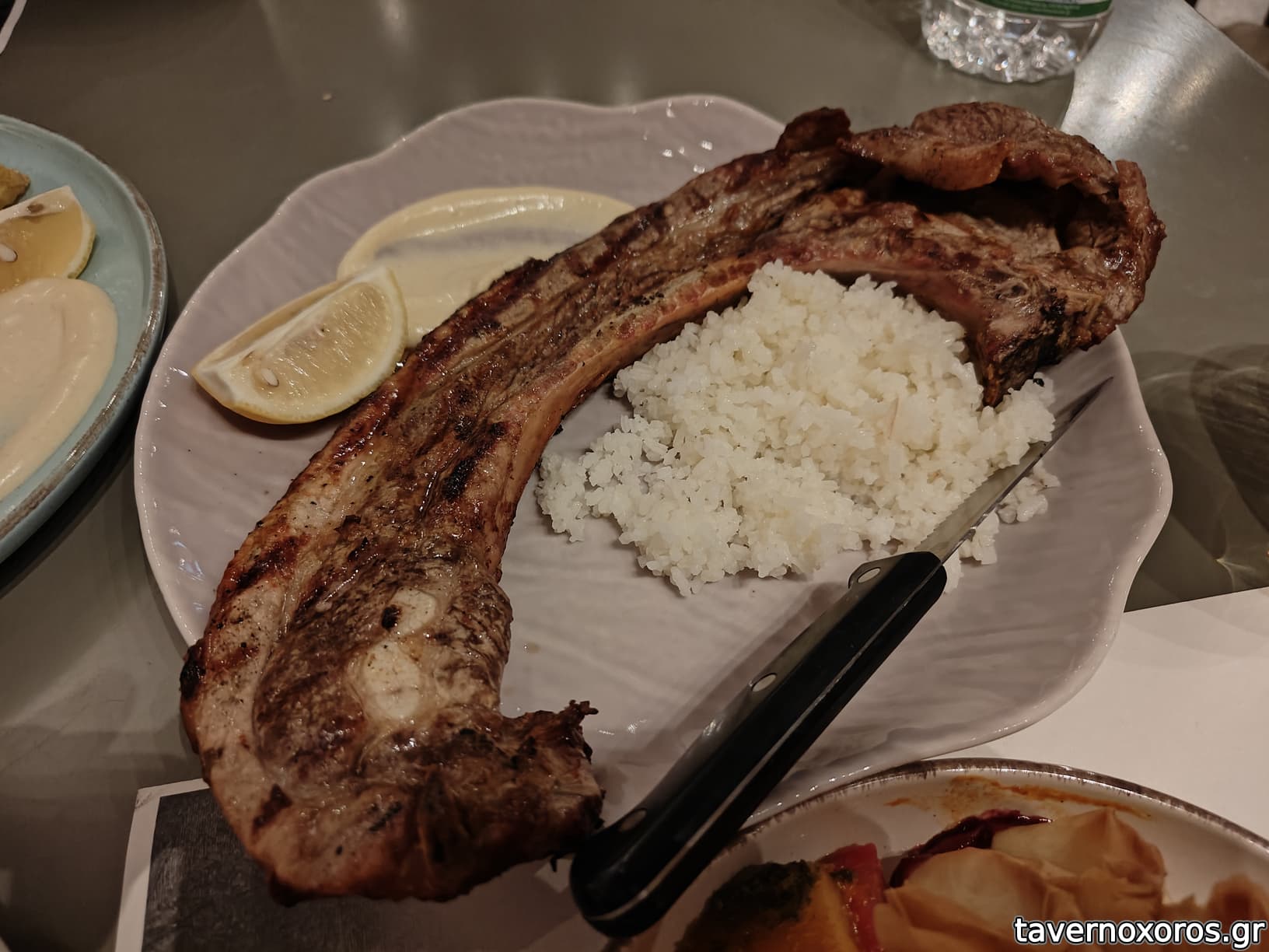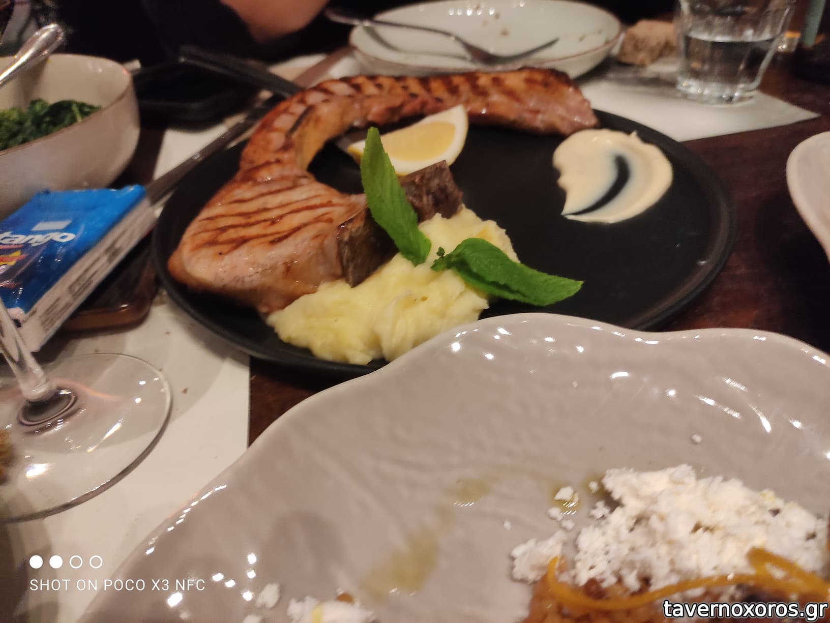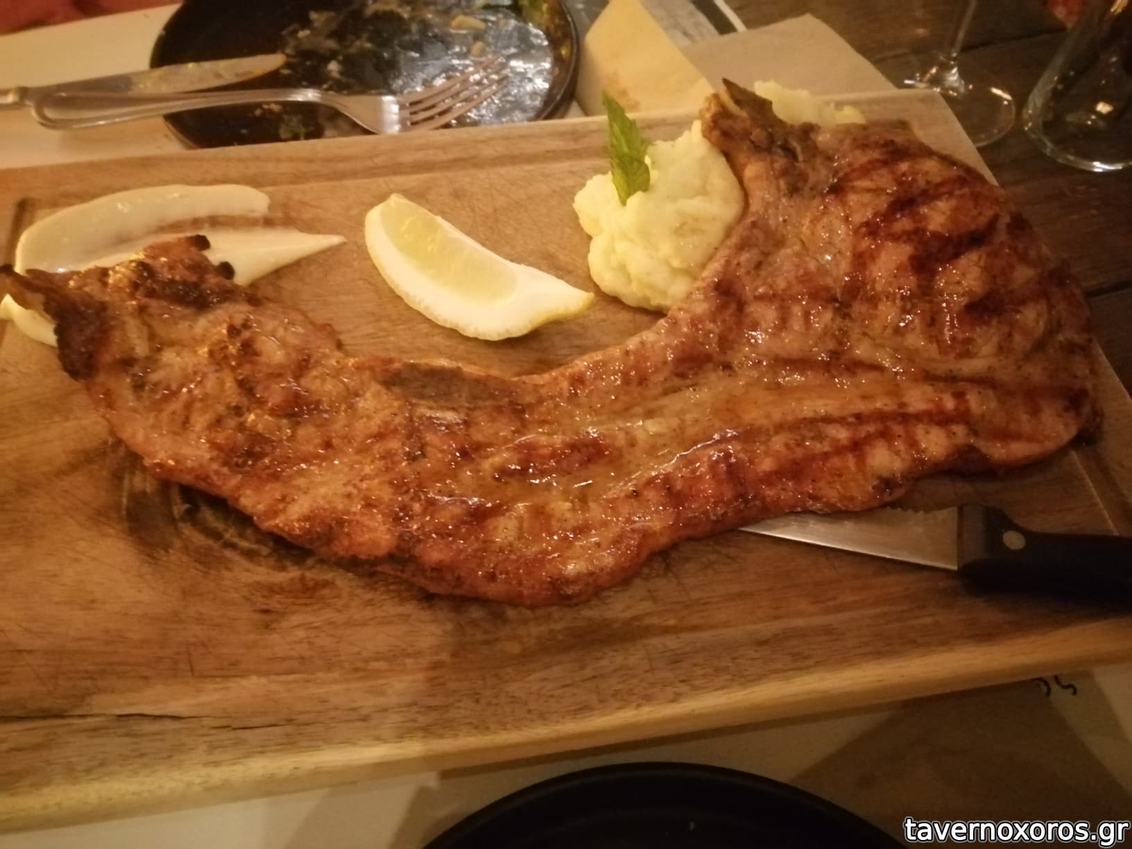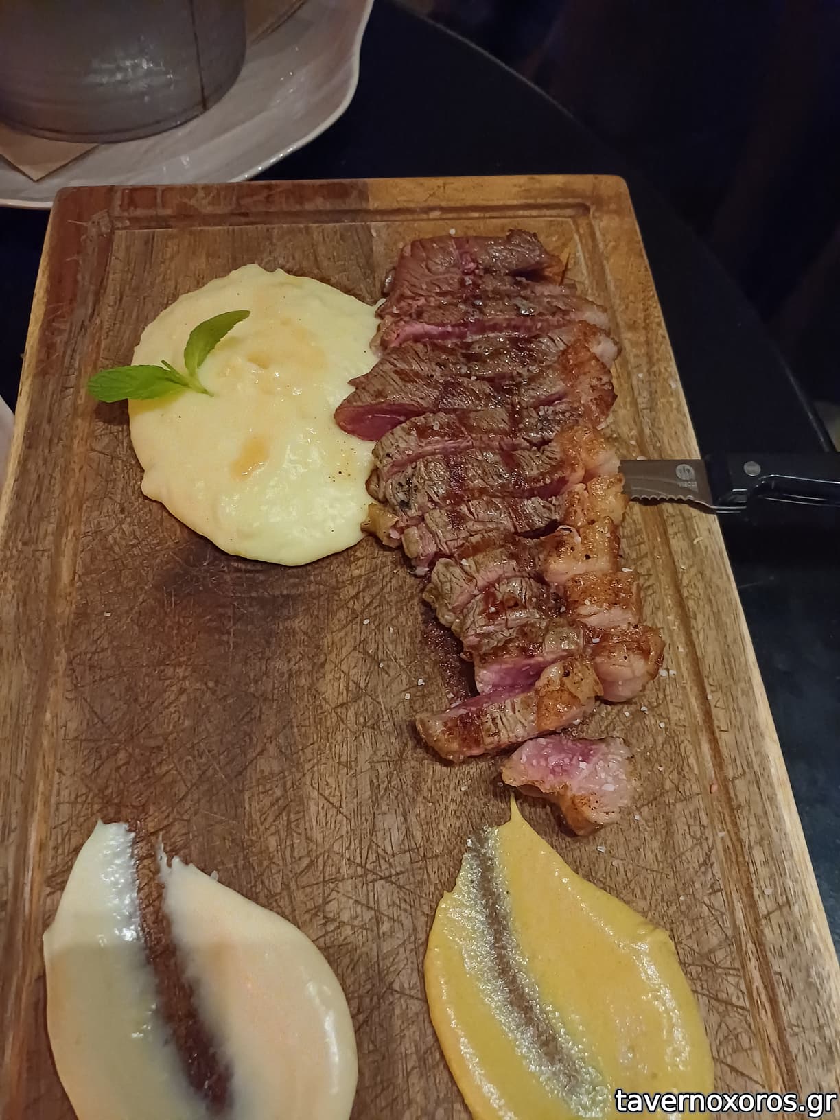 Το φαγητό γευστικά ήταν μέτριο χωρίς να έχει κάποιο κακό πιάτο αλλά και σε καμμιά περίπτωση να μας ενθουσιάσει. Ελληνική χωριάτικη σαλατα με άγευστη ντομάτα, χόρτα ωραία βρασμένα αλλά με αδιάφορο dressing, μανιτάρια πλευρώτους με πετιμέζι το οποίο δεν το γευόσουν καθόλου και σκληρό αμερικανικό ribeye… που του έλλειπε το λίπος και η νοστιμιά που περιμένεις σε ένα τέτοιο τύπο κρέατος… σαν να μην ήταν ribeye?