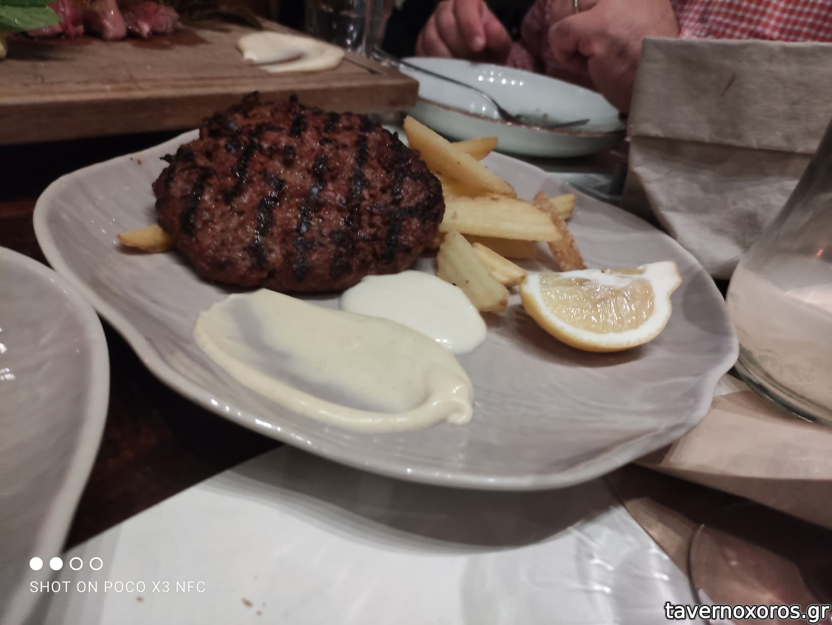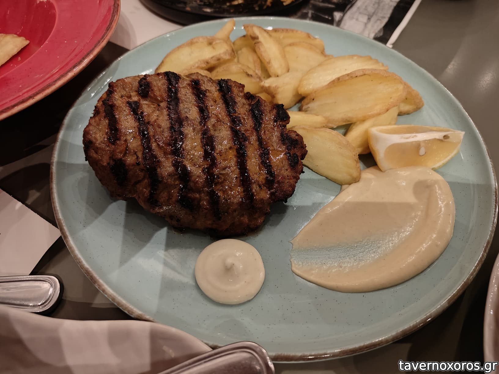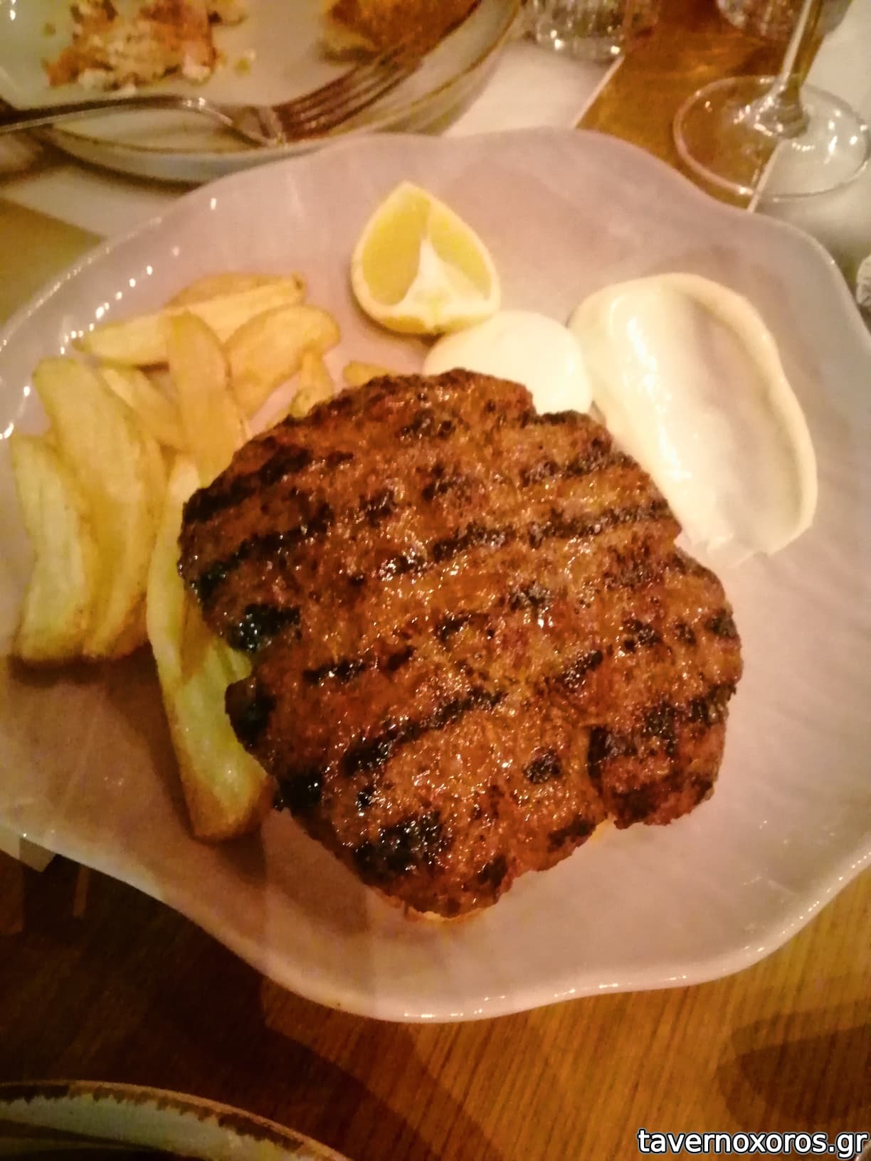 Μπιφτέκι μοσχαρίσιο. Σωστά σφιγμένο και πολύ νόστιμο.