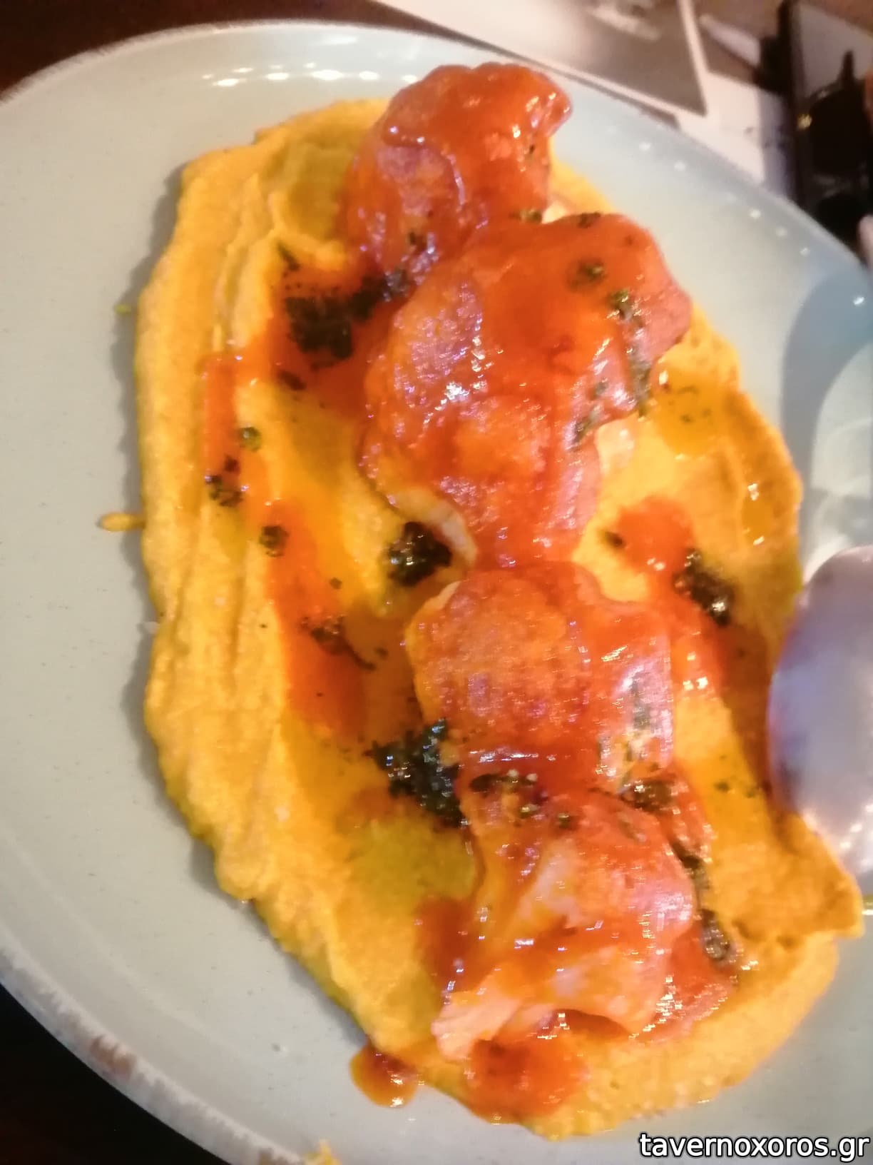 -Λουκάνικο, εξαιρετικό, του δικού μου γούστου αλλά πολύ λίγο, 4 τεμάχια μεγέθους δείκτη χεριού στην περίπτωσή μας.