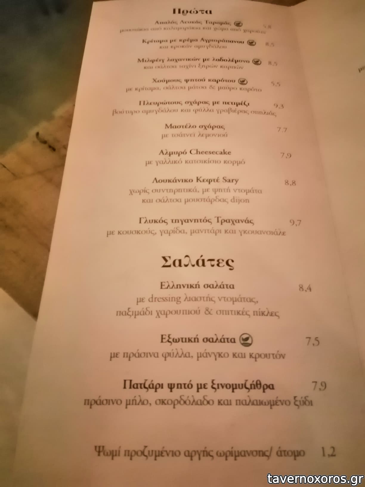 Όλα ήταν νόστιμα, μάλλον τα καλύτερα ήταν ο τραχανάς και το λαβράκι. Πληρώσαμε συνολικά 121 € με ένα μπουκάλι εμφιαλωμένο κρασί και κερασμένο αξιοπρεπές γλυκό. Θεωρώ τη σχέση ποιότητας-τιμής αρκετά καλή, τίμια. Μπορεί κανείς να πληρώσει και λιγότερο, αφού υπάρχουν αρκετά κυρίως πιάτα σε χαμηλότερες τιμές από αυτά που διαλέξαμε εμείς.