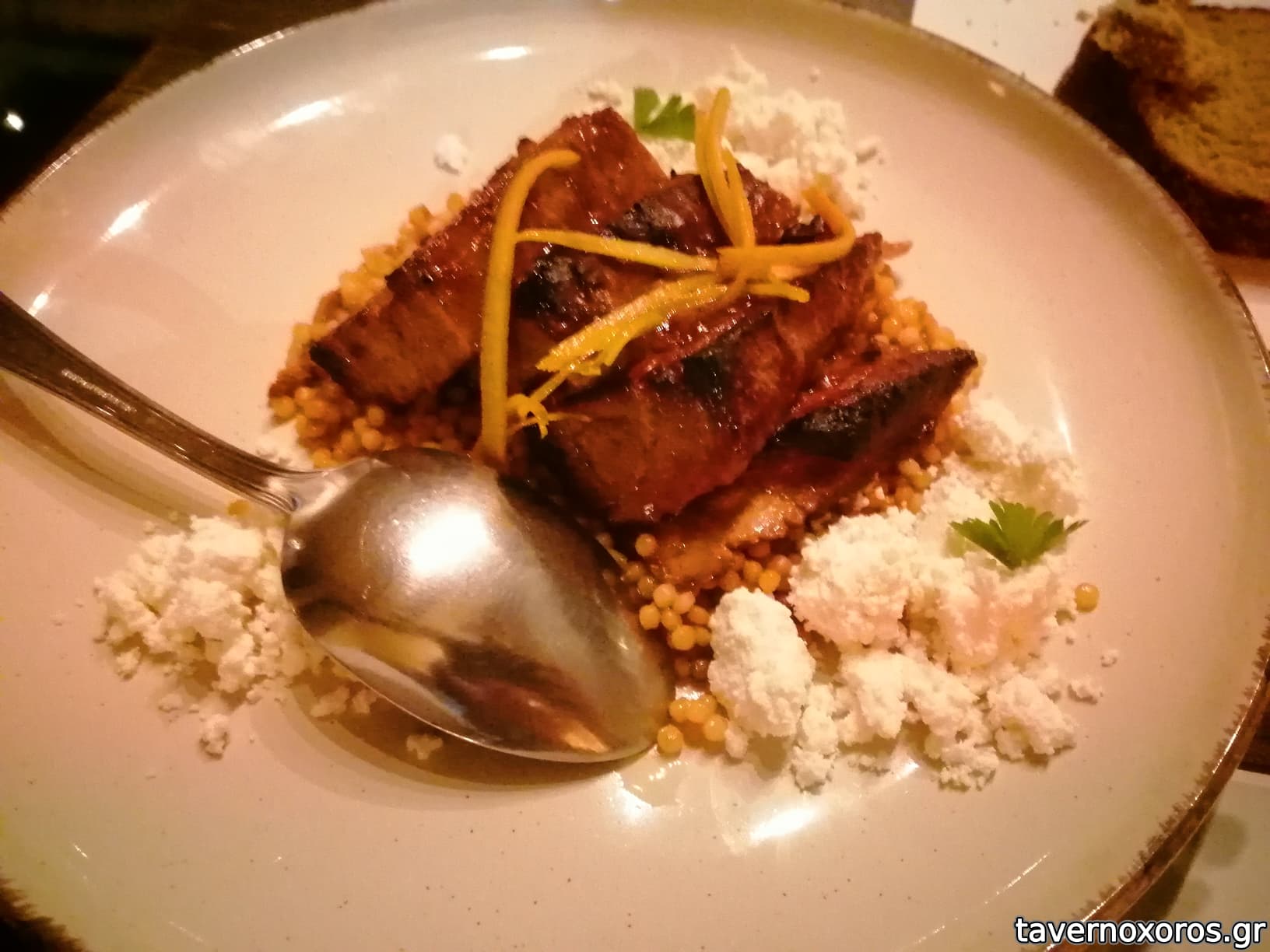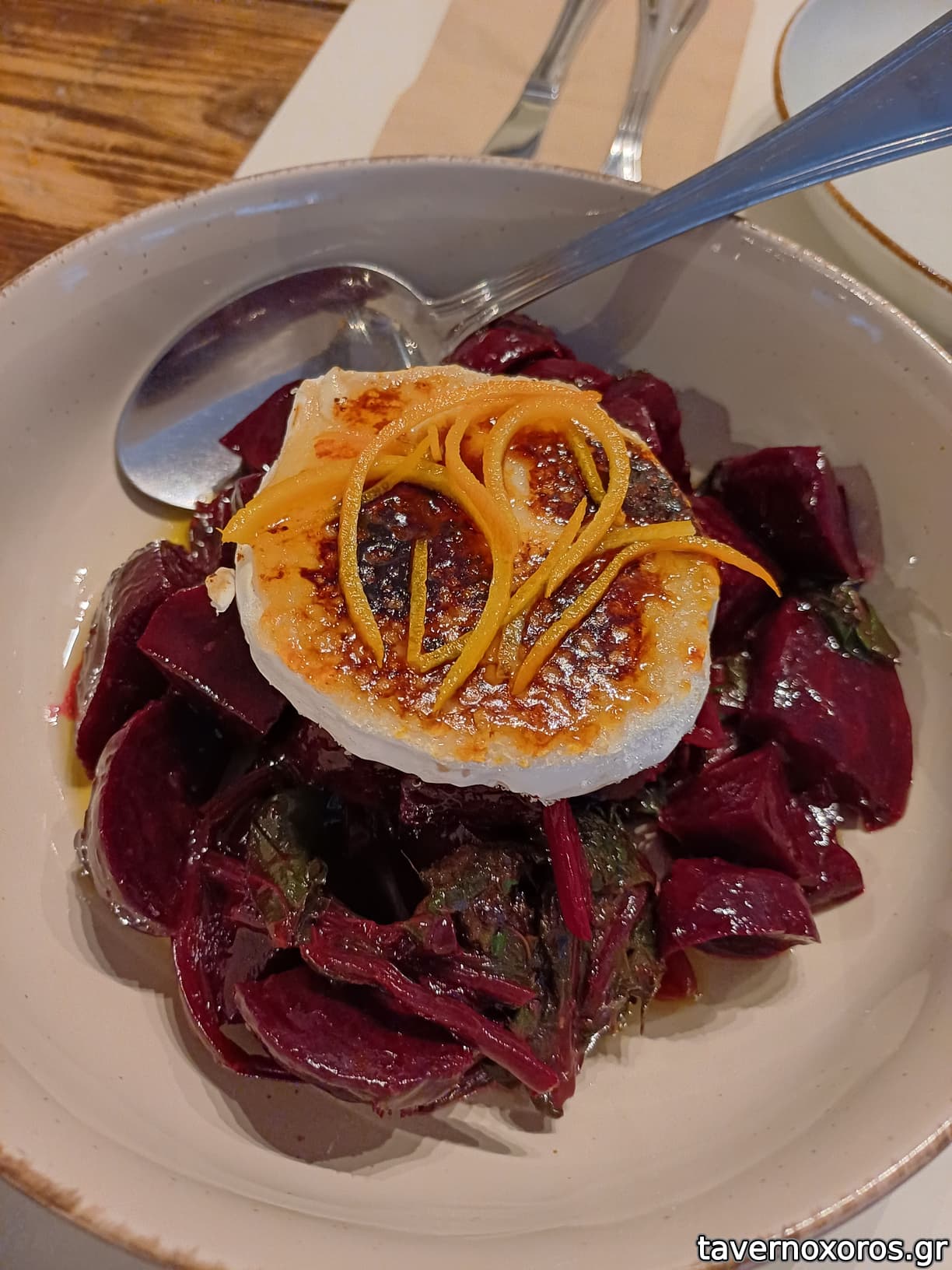 Παντζάρι με κατσικίσιο κορμό brule (πολύ καλό, ειδικά το τυρί)
